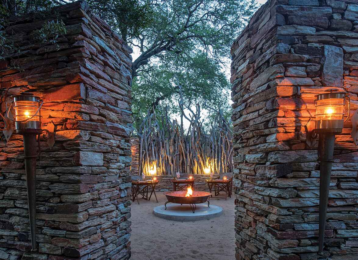 2 Pirschfahrten pro Übernachtung - vormittags und nachmittags im offenen Safarifahrzeug, optional geführte Buschwanderungen ab 16 Jahren, Bush Dinner und Bush Breakfast; auf Anfrage und gegen Aufpreis sind speziell betreute Foto- und Kunstsafaris möglich; zudem Begleitung der Ranger zur Nashornkennzeichnung, sog. „Rhino Chipping“.