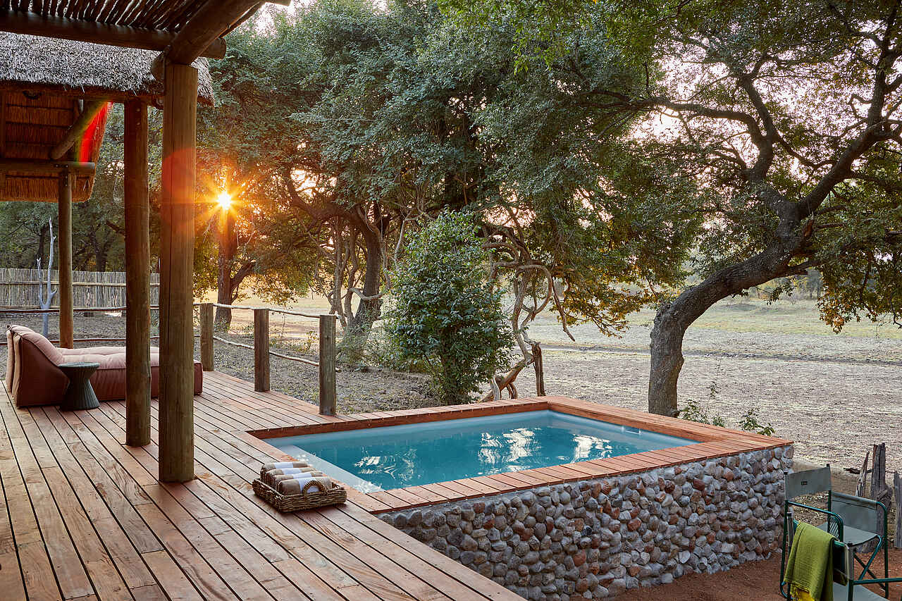 Die Lodge befindet sich im unberührten Buschland Sambias, mit Blick auf permanente Wasserlöcher, die zahlreiche Wildtiere anziehen. Die Nähe zum Haupteingang des Südluangwa-Nationalparks ermöglicht einen schnellen Zugang zu den Safari-Aktivitäten.