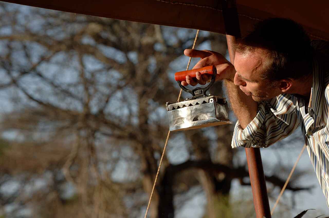 ebucht wird auf der Basis von Vollpension; alle Getränke sind inklusive, außer Champagner, importierte Weine und Spirituosen. Der Tag beginnt mit einem reichhaltigen englisch-kontinentalen Frühstücksbuffet – Früchte, Cerealien, gekochte Eier, Speck und Würstchen, Tee, Kaffee und Fruchtsäfte. Mittags nach der ersten Pirschfahrt wird ein leichtes Buffet aus Quiche, Salaten, Gemüse und Früchten serviert. Das Brot wird täglich frisch gebacken. Das 3-Gänge-Dinner bietet lokale Gerichte, die kreativ zubereitet werden. Gespeist wird an privaten Tischen im Speisezelt.