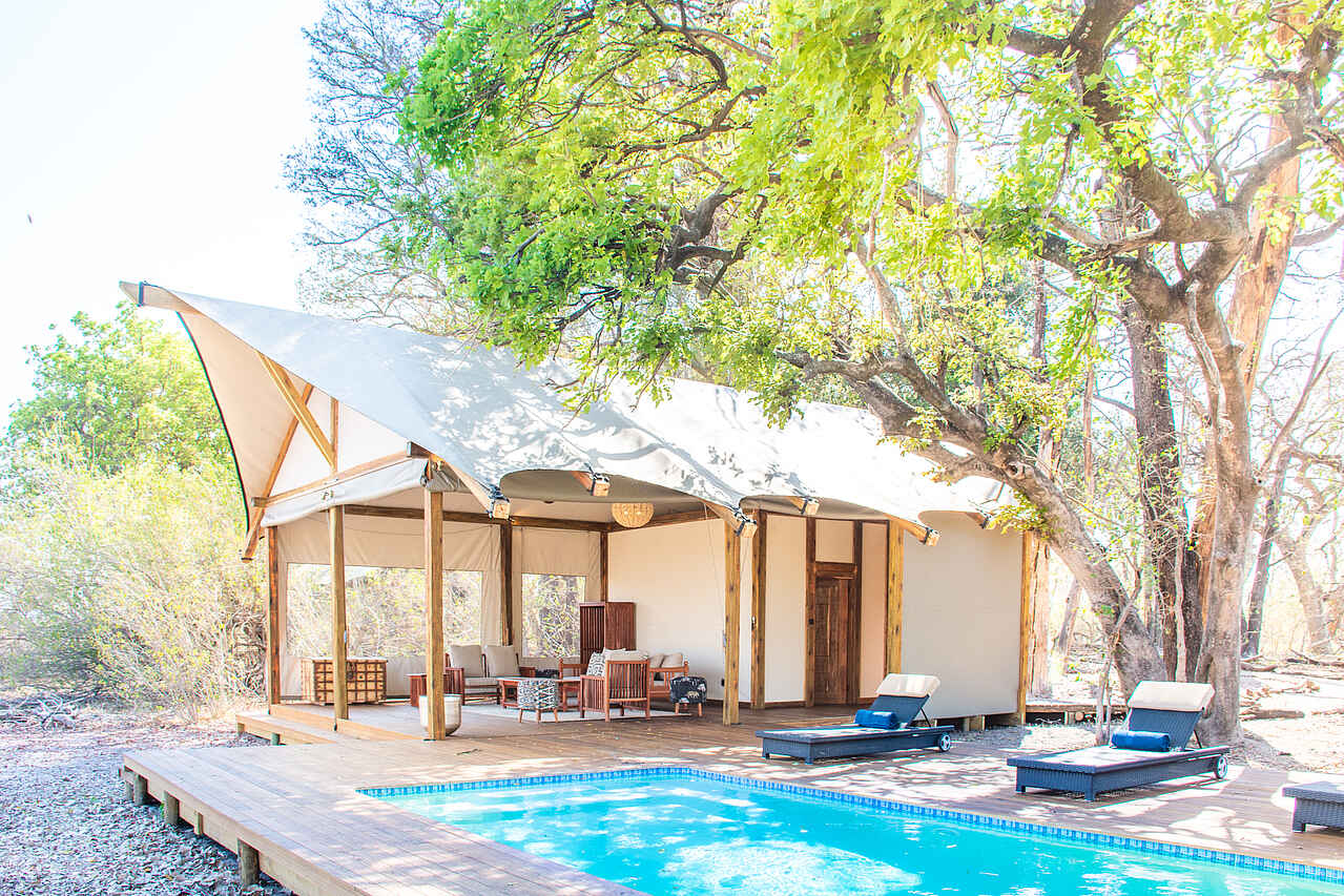 Unprätentiöses, intimes Camp in einer sehr wildreichen Gegend am Nordrand von Moremi Game Reserve. Das Camp hat sowohl zu den Wasserwegen des Deltas als auch zu den Graslandschaften direkten Zugang. Die Landschaftsvielfalt ist daher hervorragend, und nur wenige Camps im Delta bieten Vergleichbares. Das Camp kann als Teil des saisonalen 5-Flüsse Specials gebucht werden.