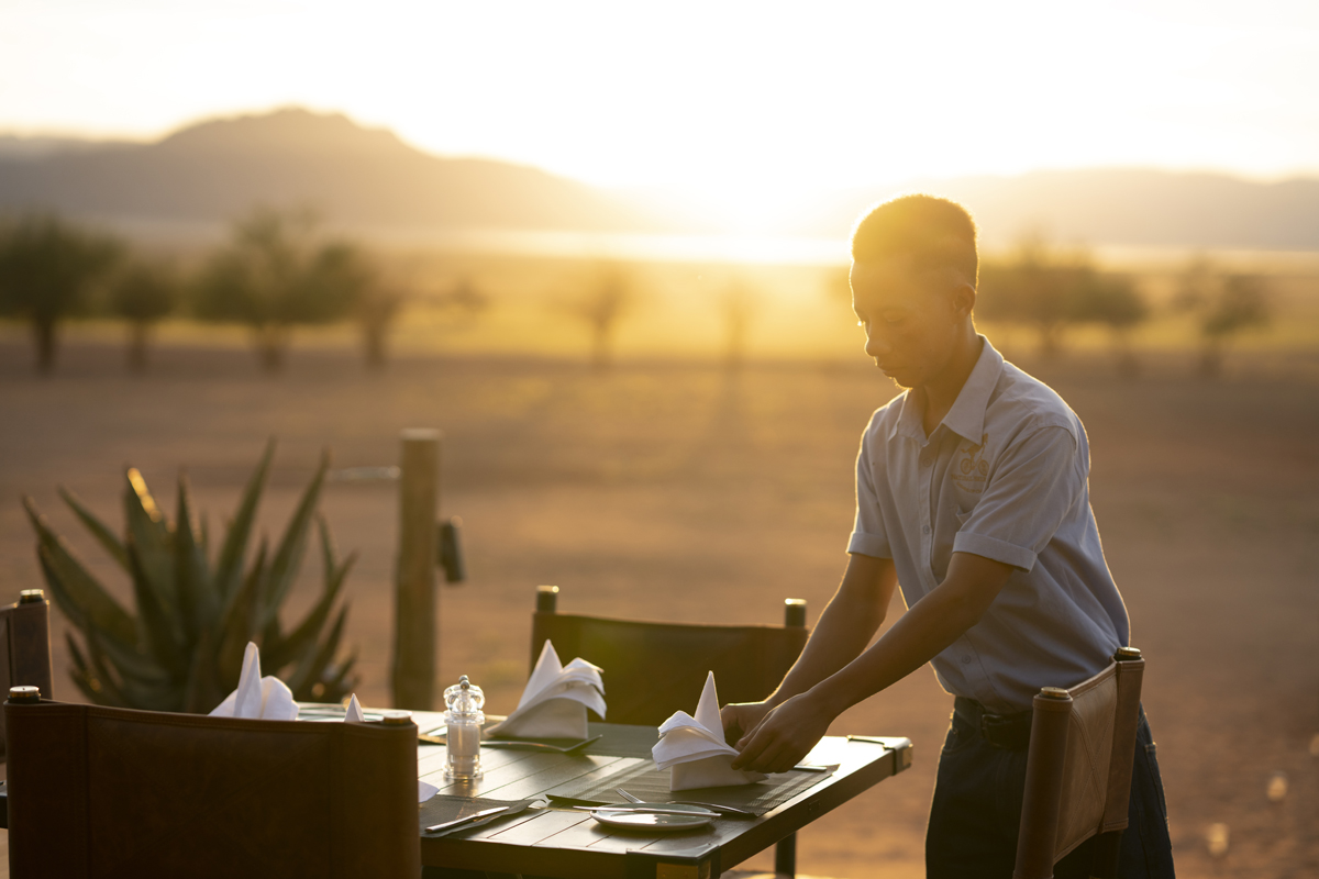 Die Lodge setzt auf Solarenergie und ressourcenschonenden Betrieb. Tourismus trägt direkt zur Finanzierung des NamibRand Reservats bei, wodurch das Schutzgebiet langfristig erhalten bleibt. Zusätzlich profitieren lokale Gemeinden von Arbeitsplätzen und Ausbildungsförderung. Kwessi Dunes setzt auf Bewahrung statt Ausbau und auf Präsenz in der Natur statt Eingriff.