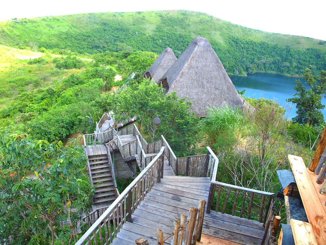Die Lodge befindet sich in dem von Kraterseen-geprägten Gebiet rund um Fort Portal und gehört zu den schönsten Destinationen in ganz Uganda. Rund um die Lodge findet man gestaltete Gärten.