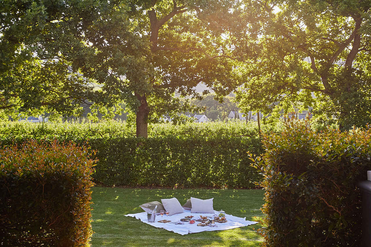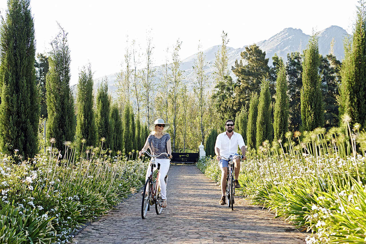 Die Umgebung lädt zu Spaziergängen durch Weinberge, zum Picknick unter alten Eichen, zu Radtouren, Reitausflügen und Golfrunden auf nahegelegenen Plätzen ein. Wer möchte, besucht eines der vielen Weingüter in der Umgebung, verkostet edle Tropfen oder lässt sich bei einer geführten Tour in die Geschichte des Franschhoek-Tals einführen. In der Lodge selbst können Gäste Tennis und Boule spielen oder sich bei einer Yoga-Session im Garten entspannen. Kulinarische Erlebnisse wie gemeinsames Kochen, Pizza aus dem Steinofen oder ein Picknick im Weinberg runden das Angebot ab. Wer es aktiver mag, kann Wanderungen im Mont Rochelle Nature Reserve unternehmen oder einen Ausflug mit dem Heißluftballon oder Helikopter buchen.