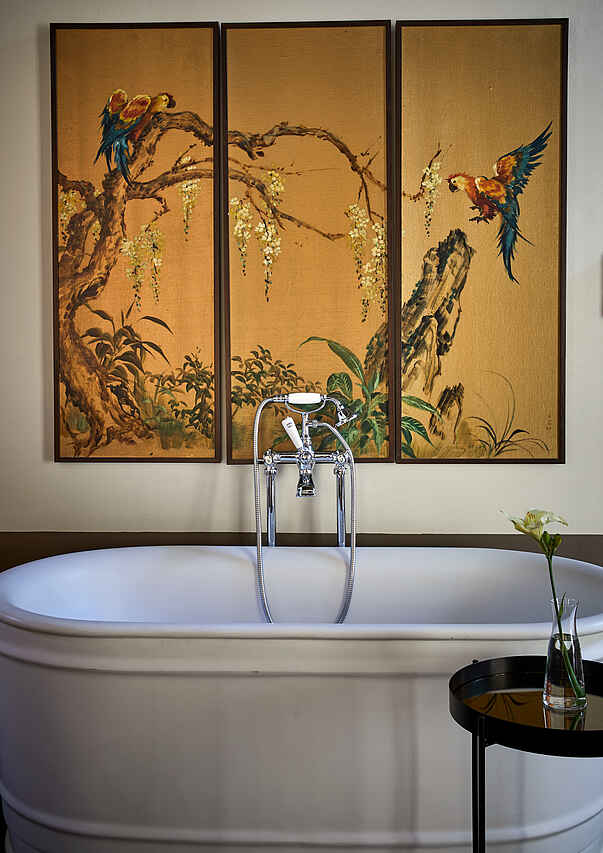 Die fünf Zimmer sind individuell gestaltet, mit edlen Stoffen, Kunstobjekten und viel Liebe zum Detail. Jedes Zimmer bietet ein großes Bett mit hochwertiger Bettwäsche, Klimaanlage, Minibar, Safe, einen Schreibtisch sowie Möglichkeiten zur Kaffee- und Teezubereitung. Große Fenster oder Terrassentüren öffnen sich zum Garten oder zum Pool. Die En-suite-Badezimmer sind modern ausgestattet mit Walk-in-Dusche, edlen Pflegeprodukten, weichen Handtüchern, Bademänteln und Haartrockner.