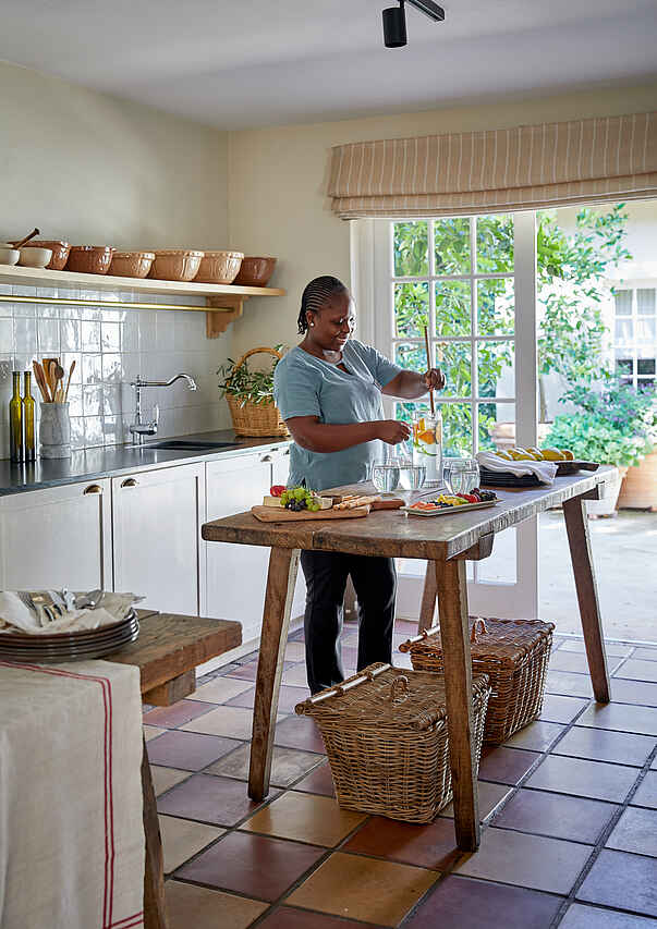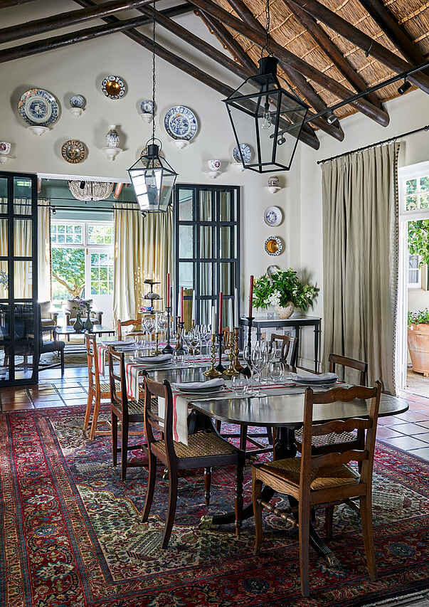 Der Tag beginnt mit einem liebevoll zubereiteten Frühstück, das im Aufenthalt enthalten ist und je nach Wunsch auf der Terrasse, im Garten oder im stilvollen Esszimmer serviert wird. Frisches Brot, hausgemachtes Gebäck, reifes Obst, Käse, Eier und lokale Spezialitäten sorgen für einen genussvollen Start. Tagsüber stehen Kaffee, Tee und kleine Snacks bereit. Abends wird es gesellig, wenn Gastgeber und Gäste an der langen Tafel zusammenkommen. Auf Wunsch sind auch private Dinner möglich oder ein südafrikanischer Braai im Garten unter dem Sternenhimmel.