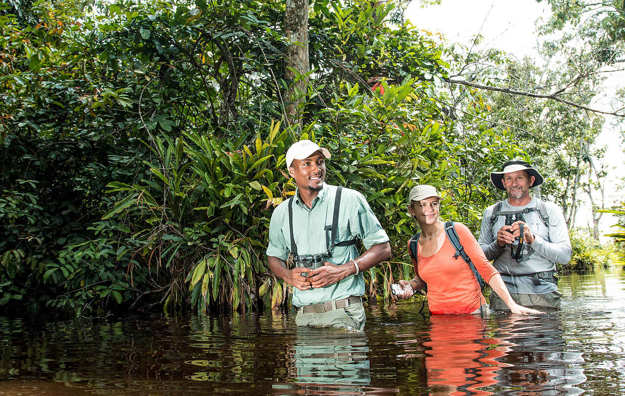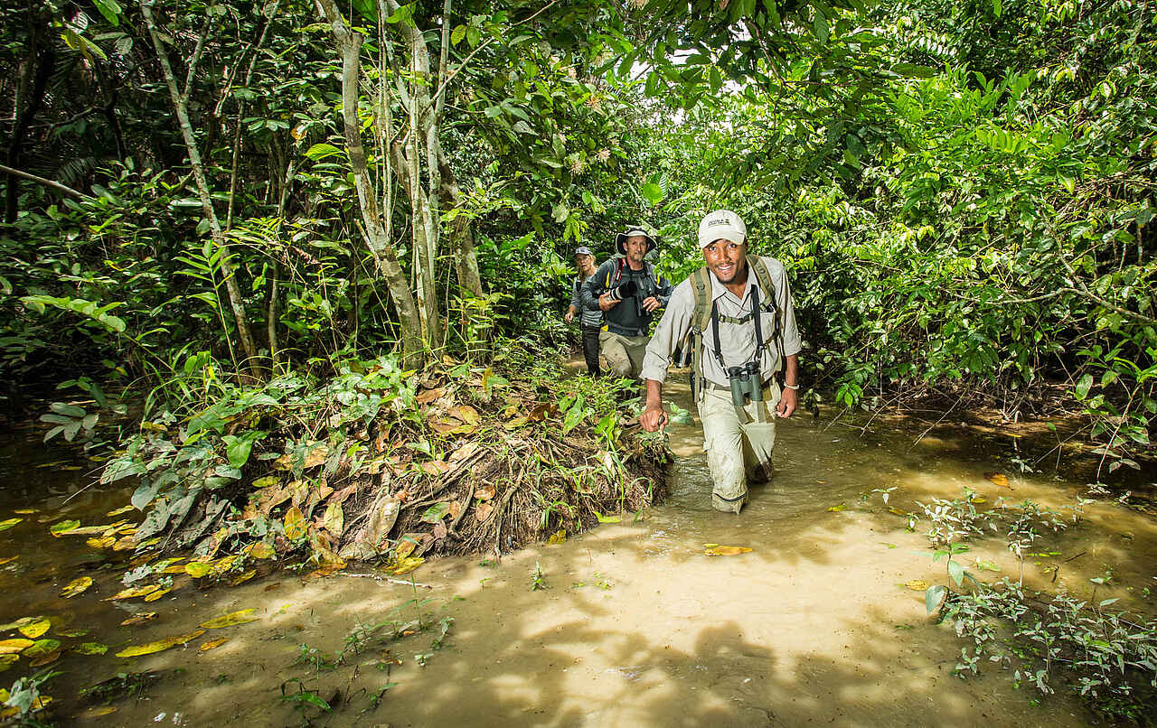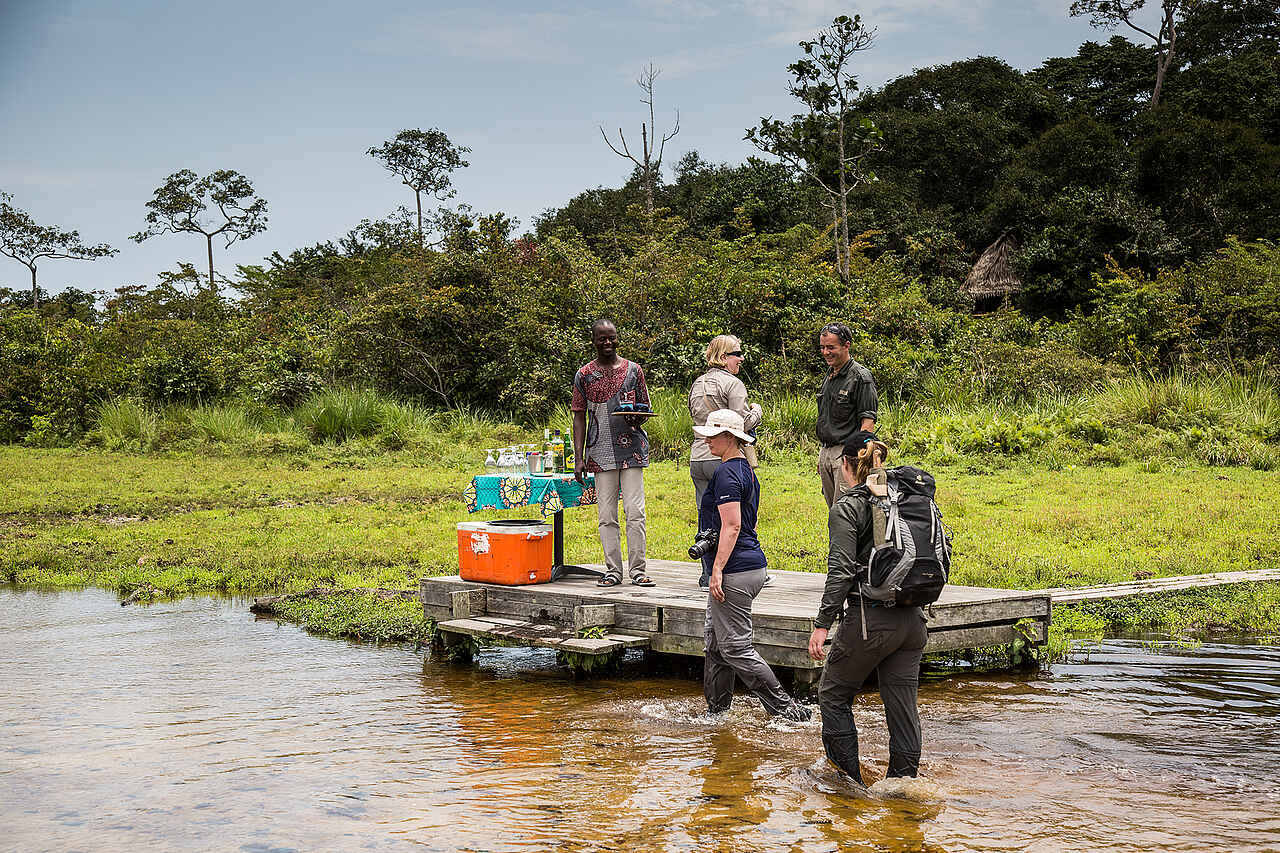 Der Fokus liegt auf der geführten Erkundung der Lagune, des Lekoli Rivers und der angrenzenden Savanne und des Regenwaldes. In der Hauptsache wird gelaufen und Gewässer durchwatet - stellenweise bis zur Hüfte. Weiterhin finden Fahrten im Kajak oder einem Aluminiumboot statt, um entferntere Gebiete kennen zu lernen. Dazu wird gegebenenfalls auch ein Fahrzeug eingesetzt.