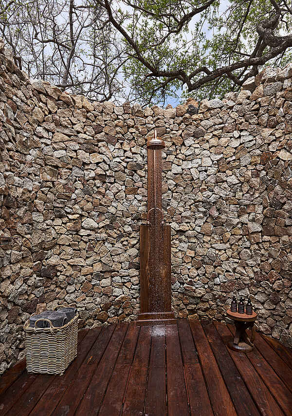 Es gibt Klimaanlage, Ventilator, Minibar, Safe und Föhn. Außerdem verfügen alle Suiten über zwei Waschbecken, eine Innen- und Außendusche, Badewanne, WC sowie fließend Kalt- und Warmwasser.