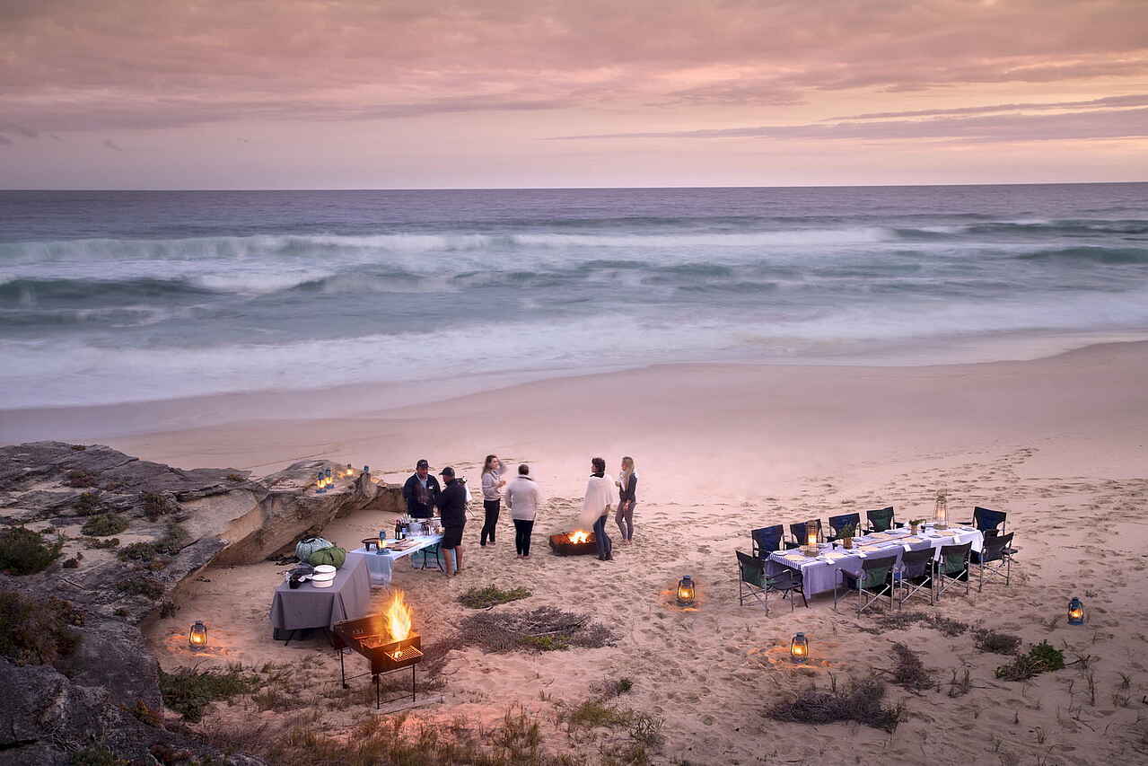 Das kulinarische Angebot der Lodge begeistert mit frischen, lokal inspirierten Gerichten, die aus saisonalen Zutaten hausgemacht und von erlesenen südafrikanischen Weinen begleitet werden. Die Zubereitung erfolgt in einer offenen, interaktiven Küche, und die Mahlzeiten werden entweder an einer langen Tafel im familiären Stil serviert oder draußen am Strand genossen - mit den Füßen im Sand. Alle Mahlzeiten sowie ausgewählte Getränke sind im Aufenthalt enthalten.