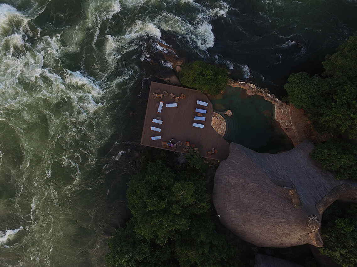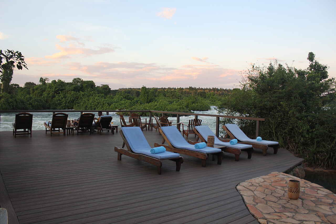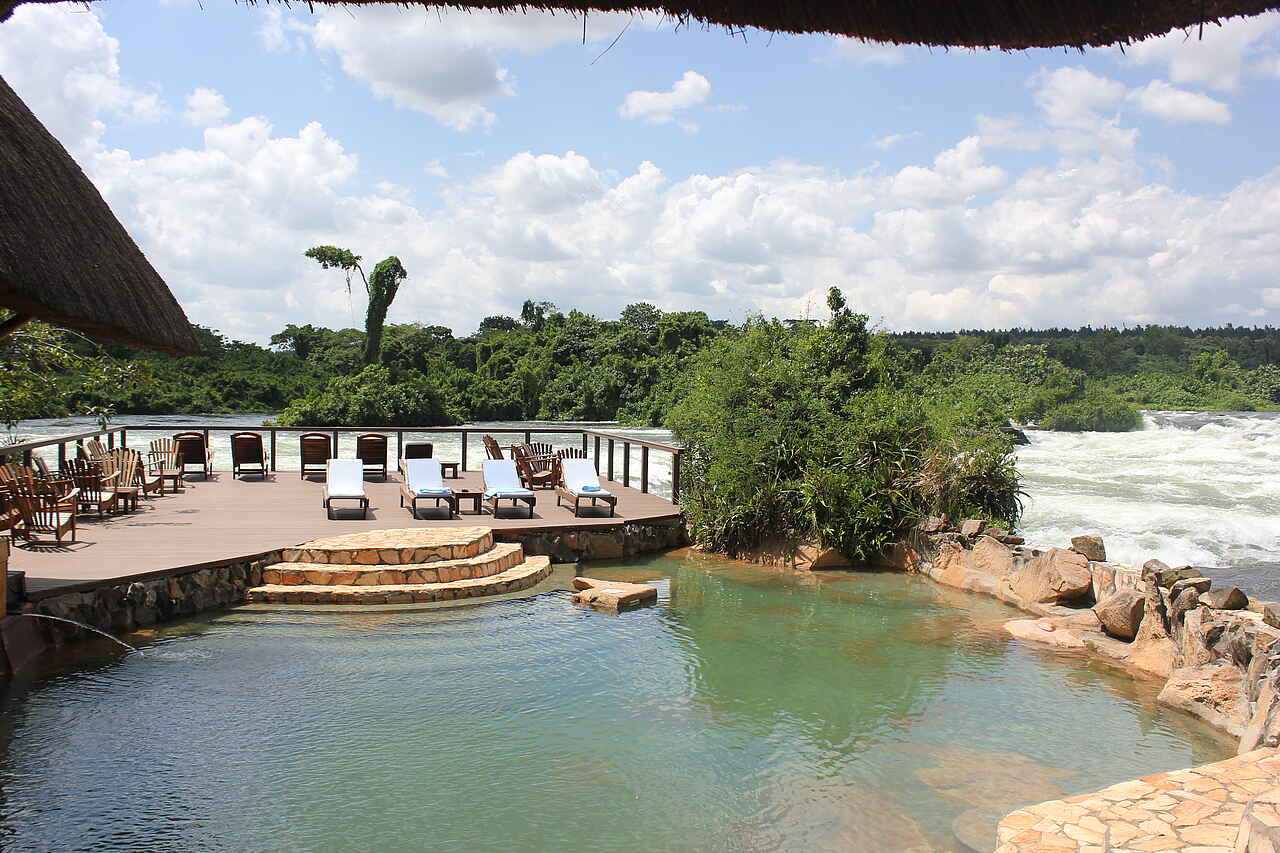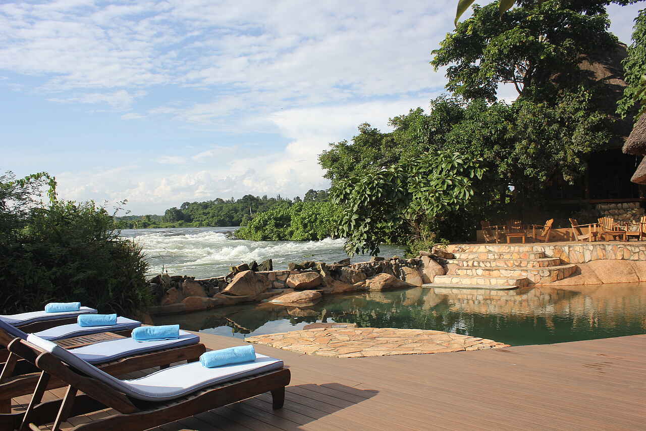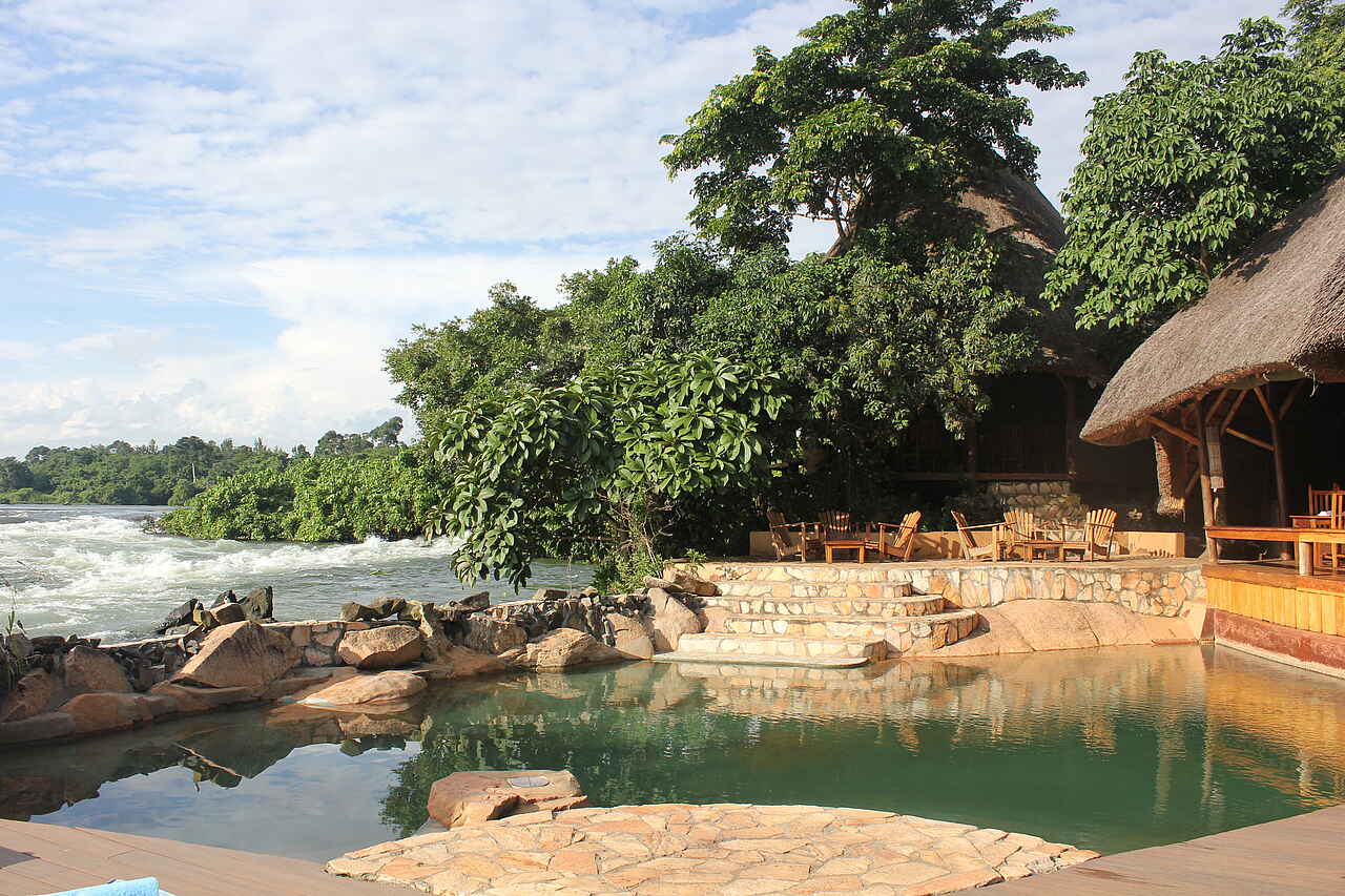 Die Wildwaters Lodge ist mit ihrer Lage auf einer Insel im Nil mit direktem Blick auf die Stromschnellen eine Unterkunft mit wunderbarer Atmosphäre und zahlreichen Möglichkeiten für Wasserfans. Die Lodge liegt auf einer felsigen Inseln mitten im Victoria-Nil, etwa 25 km flussabwärts der Stadt Jinja und kann nur mit den Boot erreicht werden. Die Region um Jinja liegt nahe beim Ausfluss des Nils aus dem Viktoriasee und ist ein Rafting-Pradise für alle Abenteuerlustigen. Umgeben von den Stromschnellen des Nils bietet die Lodge absolute Privatsphäre, eine wunderbare Aussicht, ein kühles Ambiente und eine frische Brise. Die kleine Insel ist Heimat für Otter, verschiedene Wasser-und Waldvogelarten sowie Warane. Spa-Anwendungen können im Voraus gebucht werden.