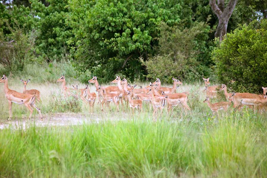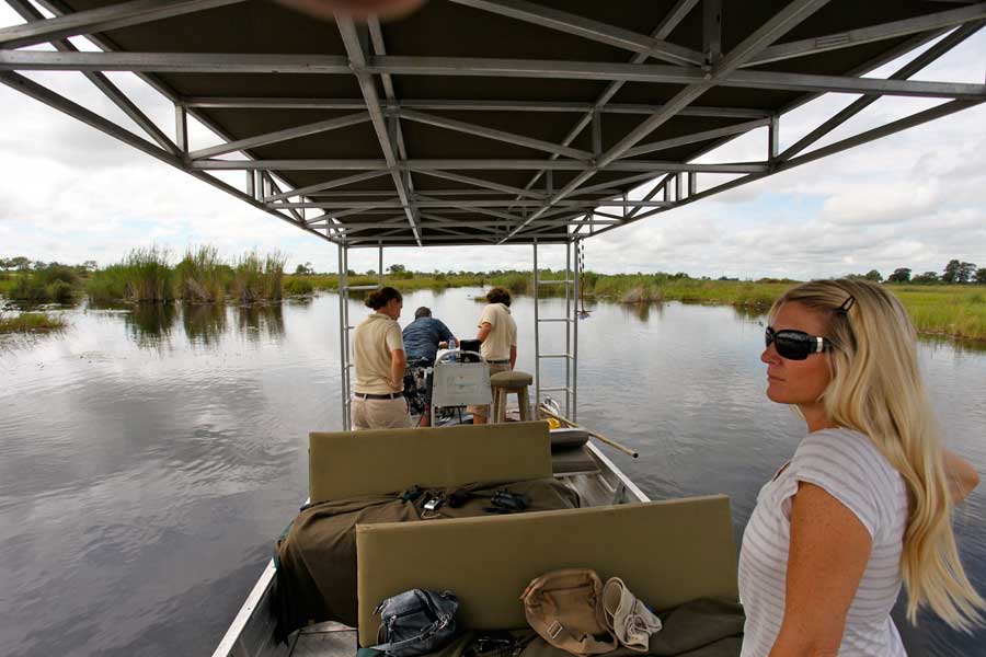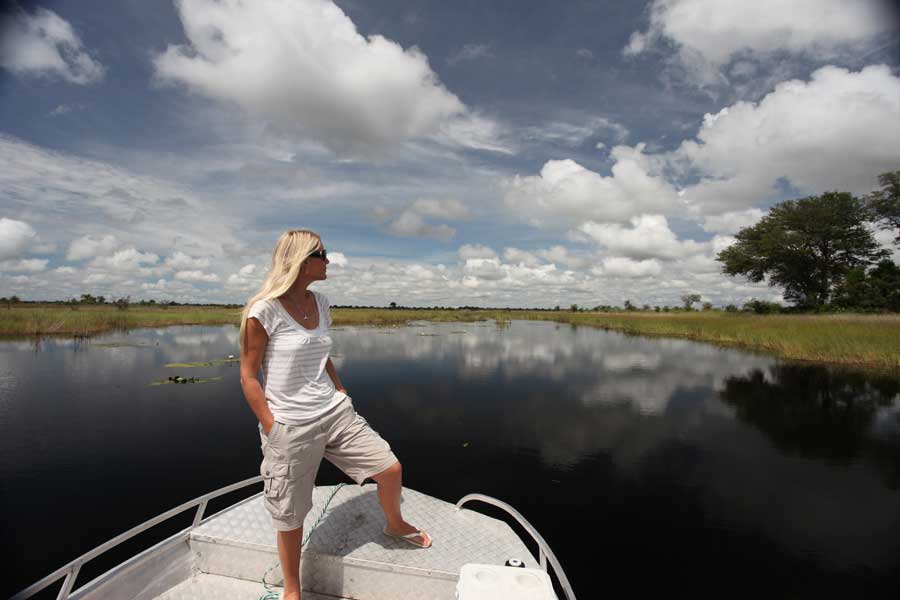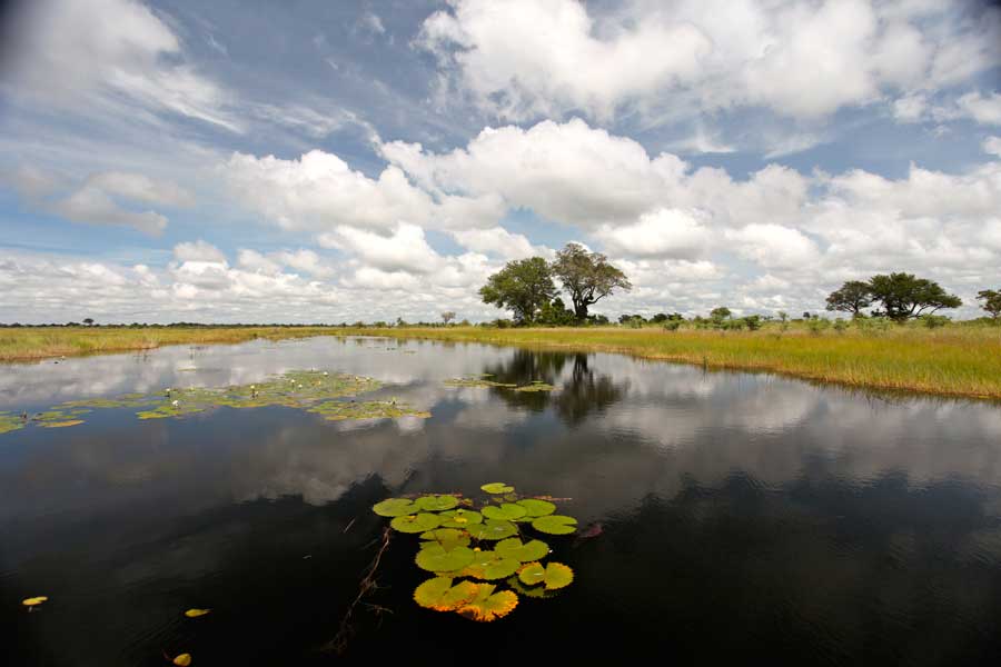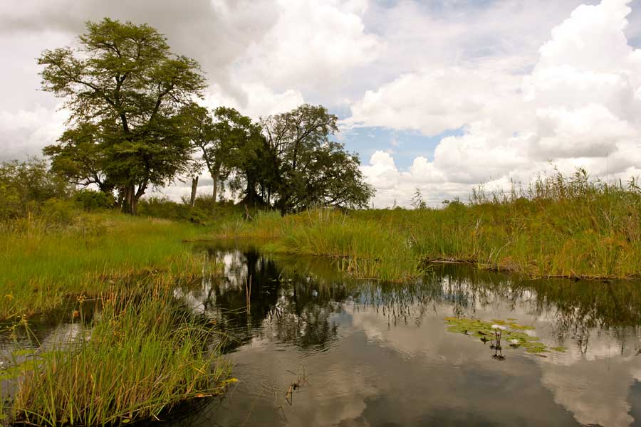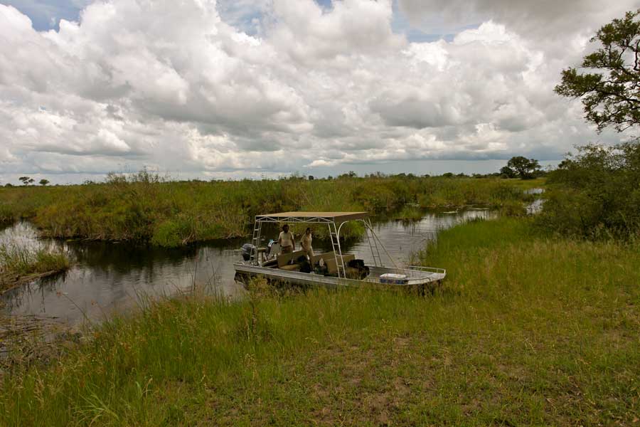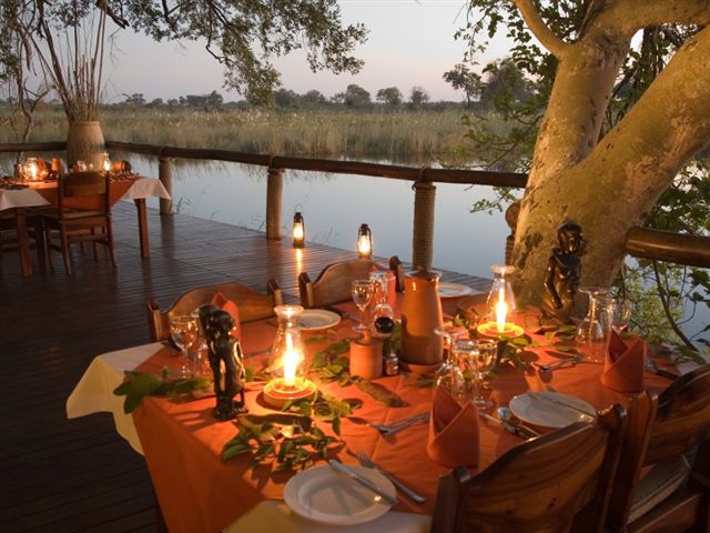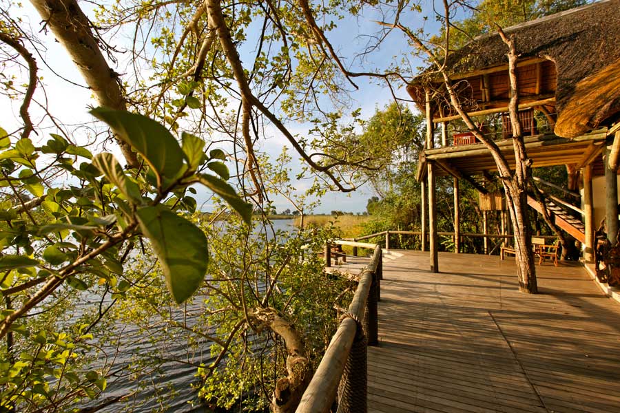 Aussichtsplattform im zweiten Stock, artenreiche Vogelwelt. Schwimmbad im Camp. Lässt sich gut mit den Camps in der benachbarten Kwando-Konzession in Botswana kombinieren. Die Lodge ist Teil des saisonalen 5-Flüsse-Specials.