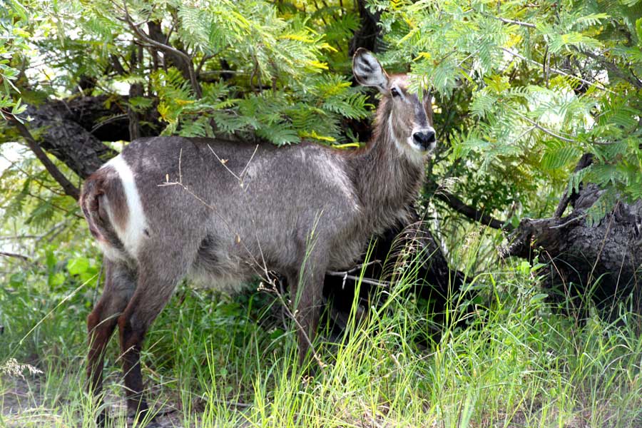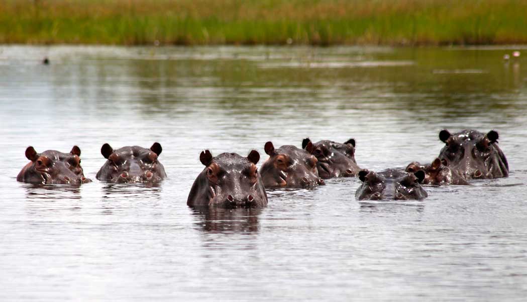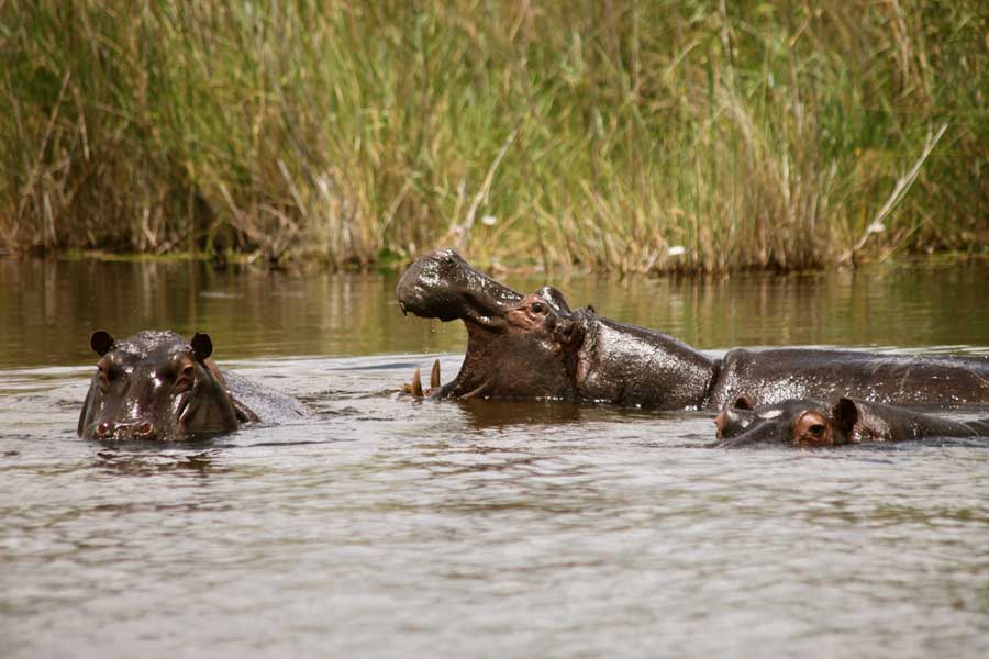 Flusspferde, Elefanten, Krokodile, Büffel, Zebras, Bleichböckchen, vielfältige Vogelwelt.