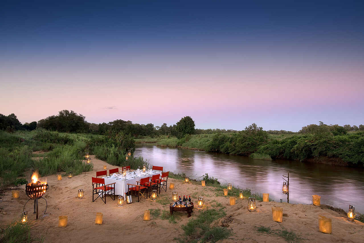 Fünf Autominuten von Skukuza Airport an den Ufern des Fluss Sabie. Hazyview liegt in ca. 60 km Entfernung. Die Partnerlodge, Lion Sands Narina Lodge, ist in unter 10 Minuten zu erreichen. Die Umgebung des Camps ist grün und zum Teil dicht bewachsen.