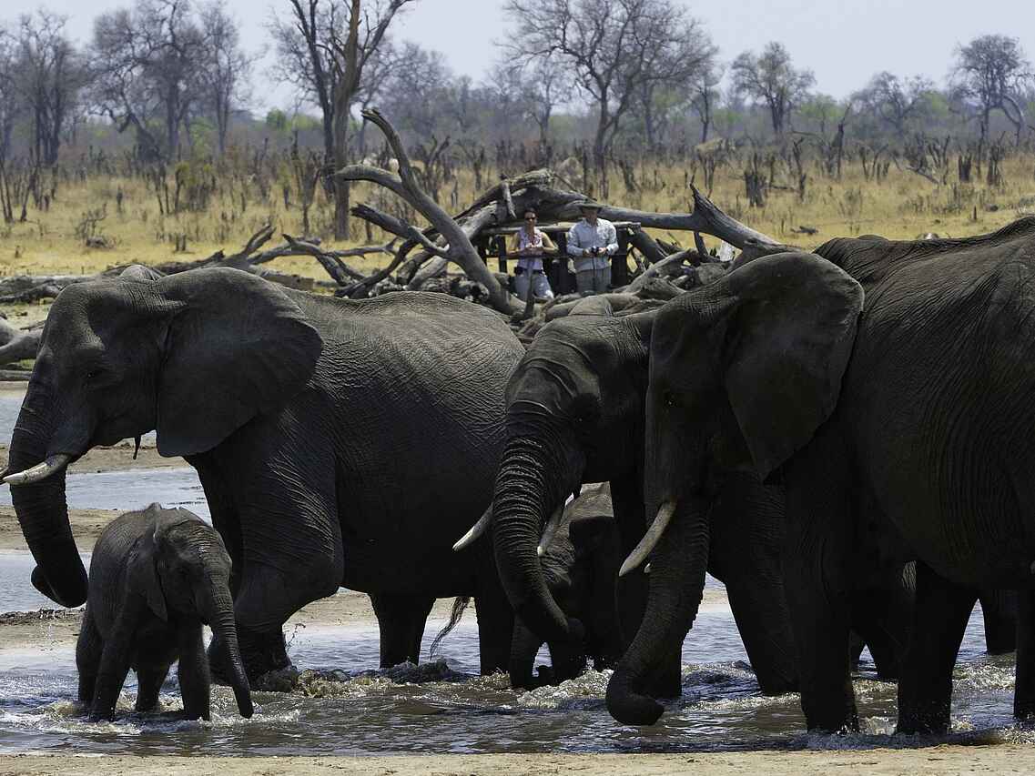 Der Hwange-Nationalpark ist bekannt für seine enorme Vielfalt an Wildtieren, vor allem Elefanten,- Büffel- und Antilopenherden sowie verschiedene Raubkatzen. Daher liegt der Fokus der Aktivitäten auf Wildtierbeobachtungen und Buschwanderungen. Diese werden entweder im offenen Geländewagen oder zu Fuß in Begleitung eines bewaffneten und erfahrenen Rangers durchgeführt. Aber auch Vogelbeobachtungen sind zu empfehlen, da in dieser Region 400 Vogelarten beheimatet sind. An jedem Zelt gibt es eine kleine Vogeltränke wo man in ruhigen Stunden am Nachmittag Vögel beobachten kann.