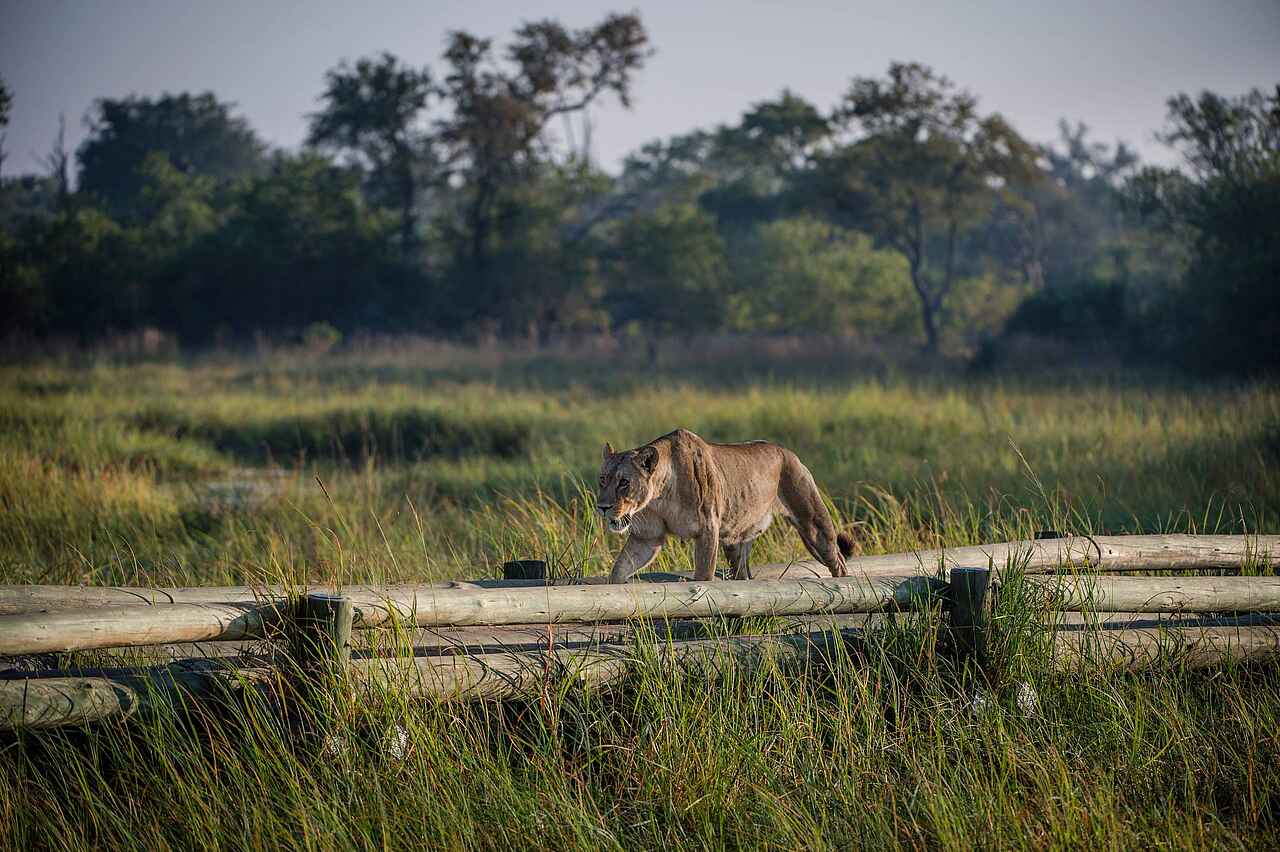 Im abwechslungsreichen Khwai- / Moremi-Gebiet sieht man vor allem in der Trockensaison von Juni bis Oktober sehr viele Elefanten und Büffel, die sich gerne am Fluss aufhalten. Die Feuchtgebiete und Flüsse beherbergen beeindruckende Mengen an Letschwe-Antilopen, Flusspferden und Krokodilen, während sich auf trockenem Land die Großkatzen, wie z. B. Löwen und Leoparden, entlang der Baumgrenzen verstecken und manchmal sogar direkt durch das Camp streifen.