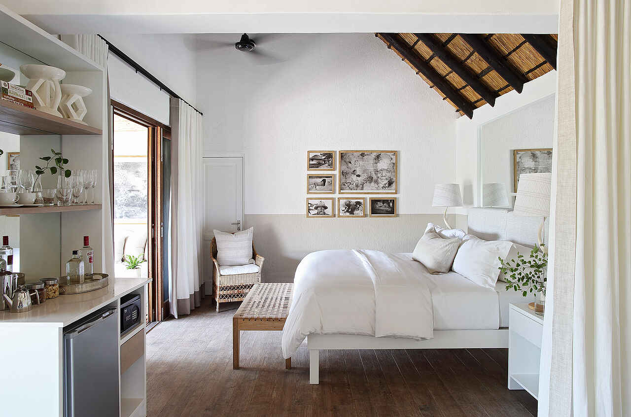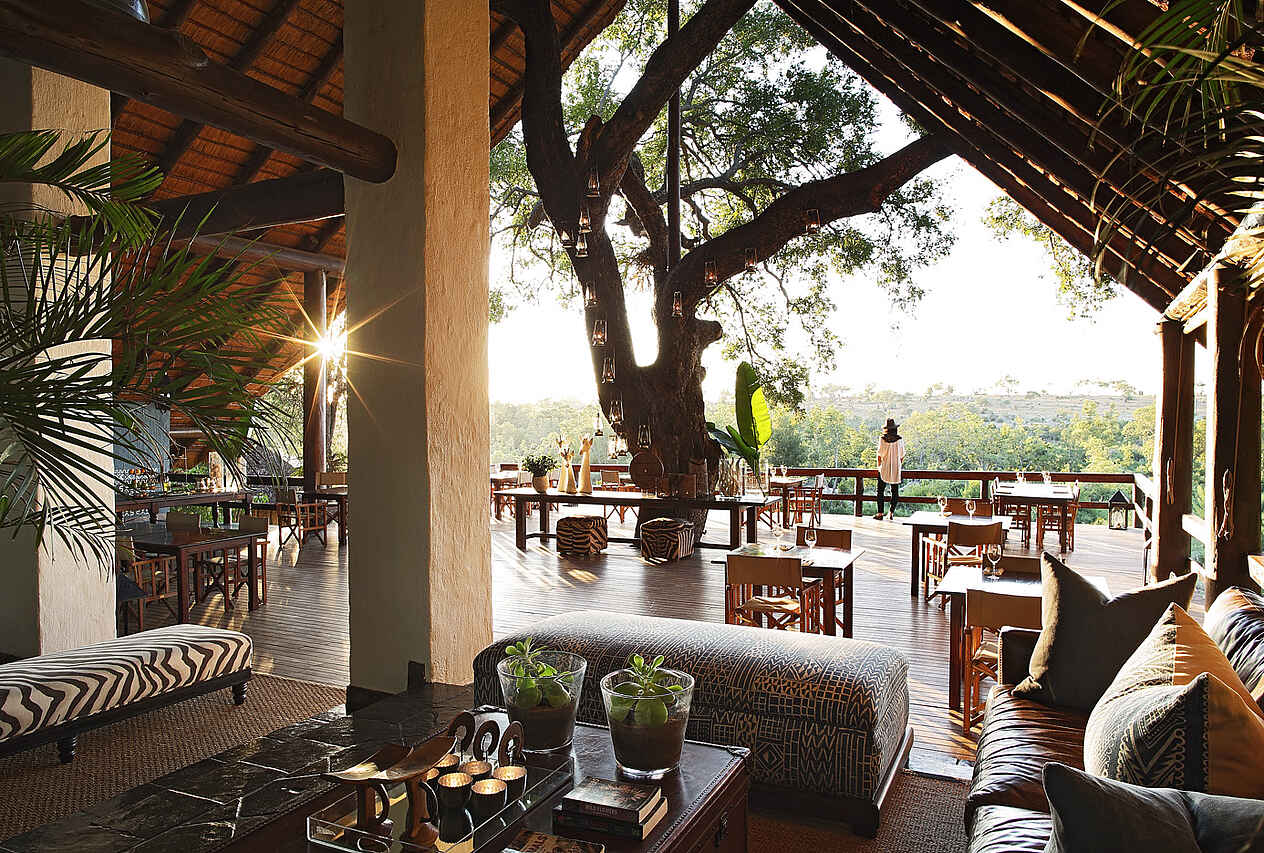 Alle Mahlzeiten und Getränke, auch alkoholische, mit Ausnahme von Premiummarken. Mehrere Mahlzeiten täglich: Kurzer Snack vor der morgendlichen Pirschfahrt am Buffet, Morning Coffee mit Snack während der Pirschfahrt, warmes und kaltes Frühstück nach Rückkehr, serviert am Platz; Mittagessen serviert, Hightea vor der Nachmittagsaktivität, Sundowner mit Snack während der Pirschfahrt, gemeinsames Dinner abends, 3 Gänge, serviert, oder Barbecue in der Boma mit anderen Camps zusammen. Servierte Mahlzeiten am Zweiertisch, private Dinner auf Anfrage. Speisen abwechslungsreich mit Fisch, Fleisch, Gemüse, vegetarisch, vegan und koscher auf Anfrage. Besonders koscher vor Anreise kommunizieren wegen Anlieferung aus Johannesburg.