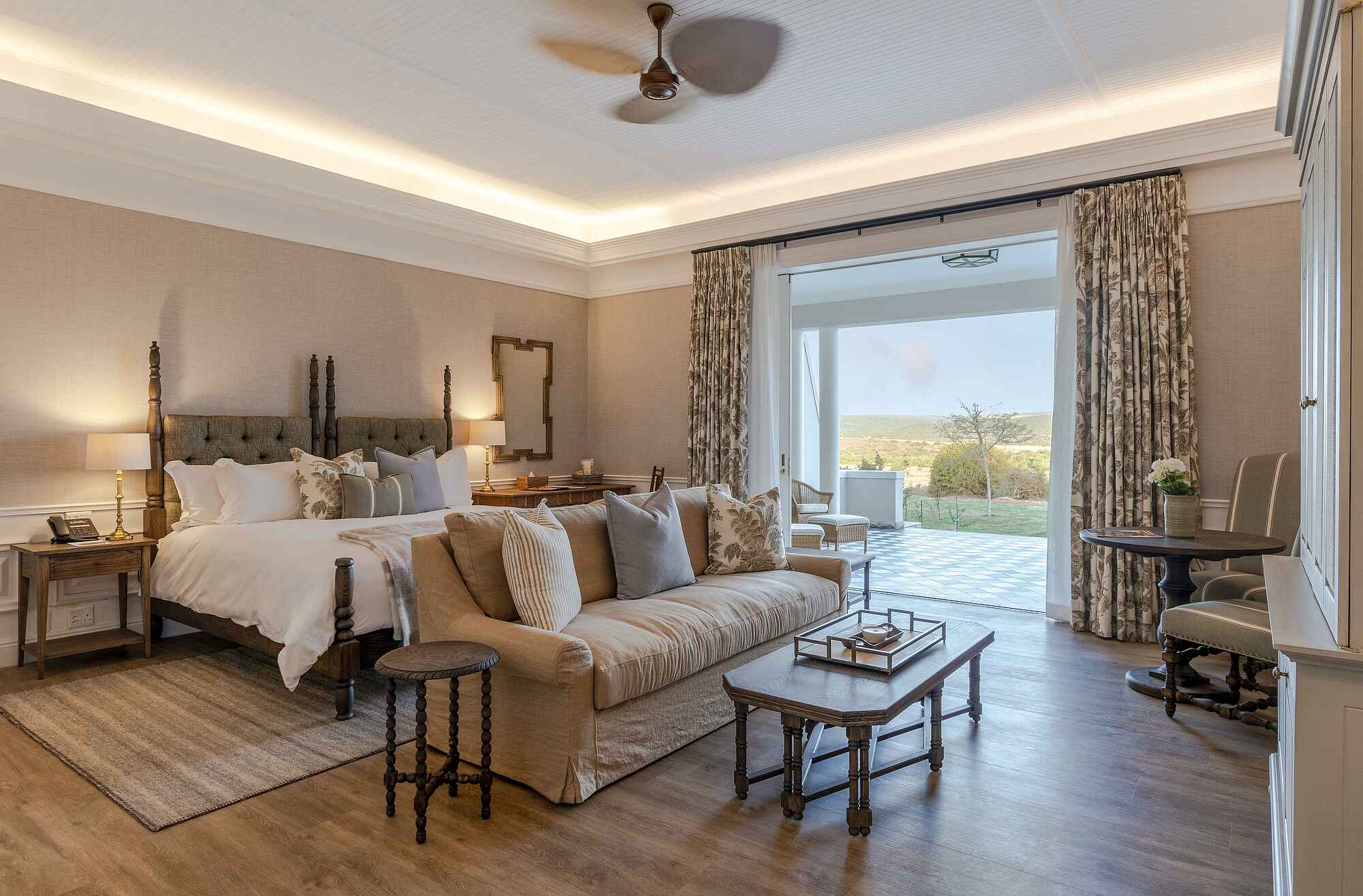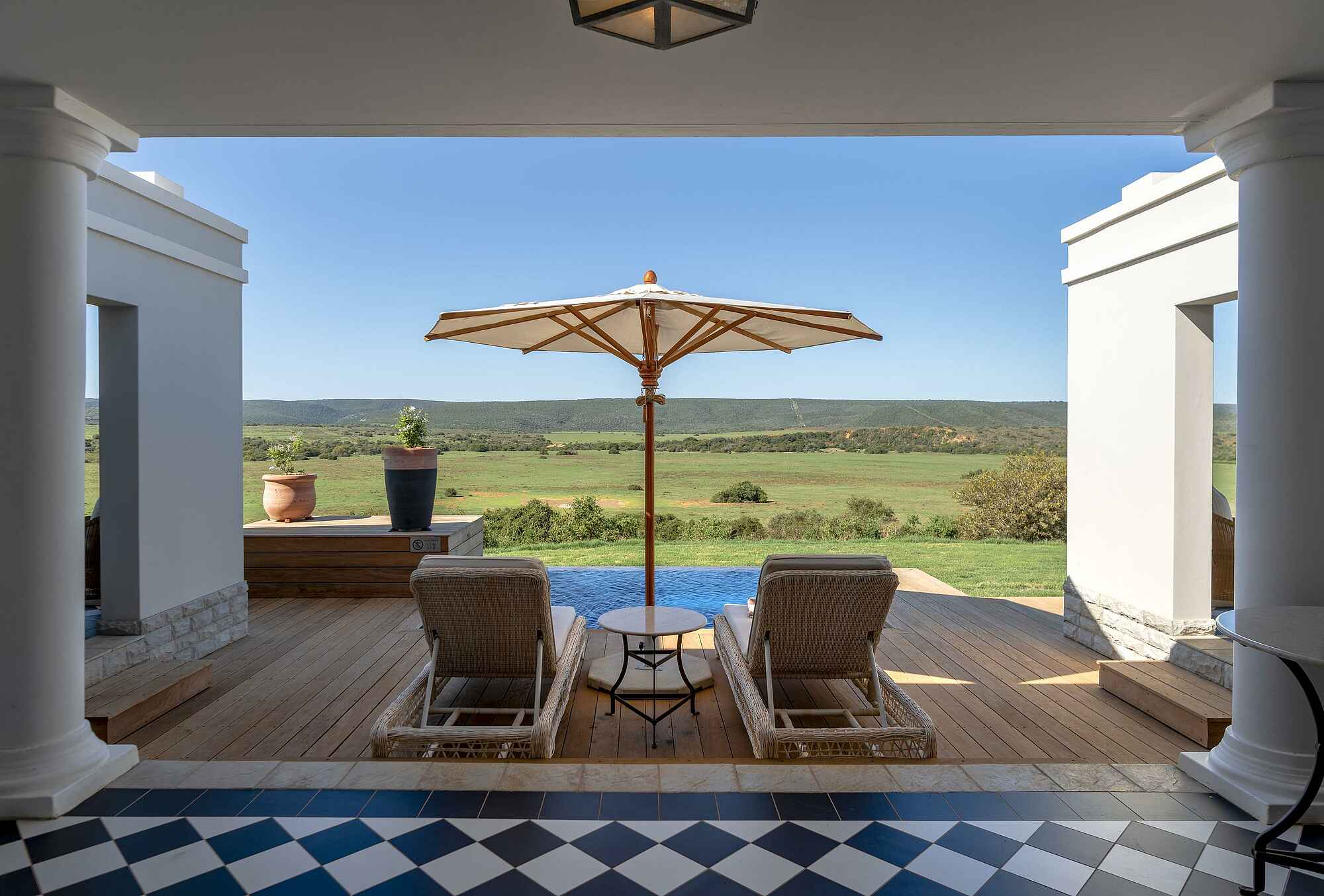 Die eleganten Zimmer und Suiten verteilen sich rund um das Haupthaus und schaffen eine ruhige, komfortable Atmosphäre mit viel Privatsphäre. Hochwertige Kingsize- oder Twin-Betten mit feiner Bettwäsche sorgen für erholsamen Schlaf, während gemütliche Sitzbereiche, Klimaanlage, Minibar, Nespresso-Maschine, Safe und Satelliten-TV modernen Komfort garantieren. Die großzügigen Badezimmer sind stilvoll ausgestattet mit Doppelwaschbecken, Dusche und Badewanne. Besonders großzügig präsentiert sich die Familiensuite mit zwei Schlafzimmern, separatem Wohnbereich und eigenem beheiztem Plunge-Pool. Verandas oder Terrassen laden dazu ein, die Weite der umliegenden Landschaft zu genießen und ganz in die Stimmung des Safaricamps einzutauchen.