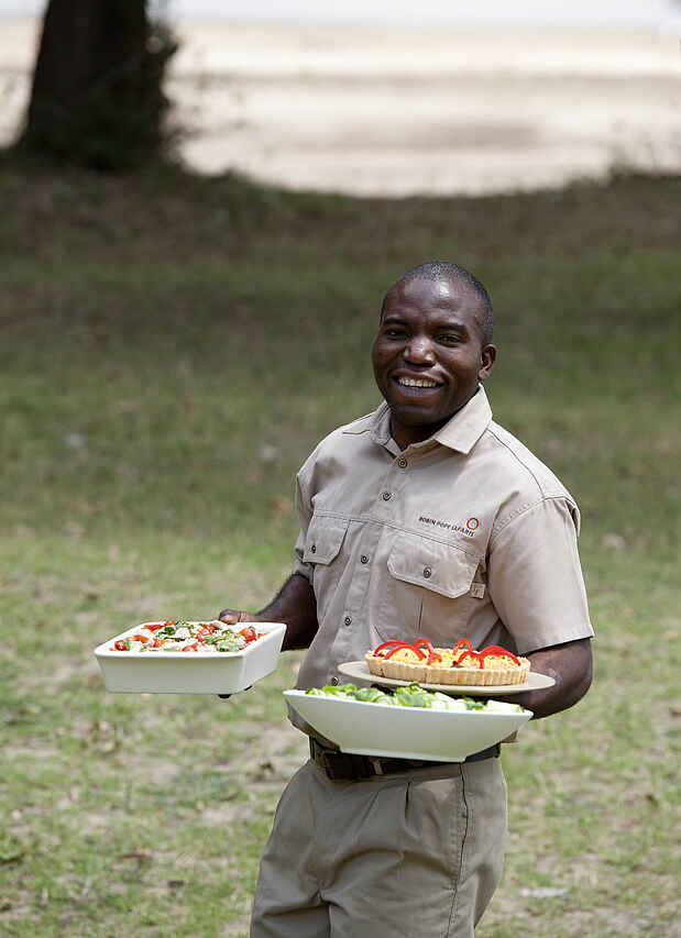 All Inclusive, 4 Mahlzeiten. Frühstück, Brunch, High Tea und Abendessen mit drei Gängen. Die Mahlzeiten werden gemeinschaftlich eingenommen, entweder im Speisebereich oder auf einem der Decks. Auf Wunsch werden private Candle Light Dinner im Bush oder am Ufer des Luangwa vorbereitet. Die Küche ist kontemporär europäisch und afrikanisch ausgerichtet. Besondere Wünsche werden gerne berücksichtigt. Alle Getränke, auch Sundowner im Gelände sind inbegriffen, ausgenommen sogenannte "Premium Drinks" und "Imported Brands" nach separater Abrechnung.