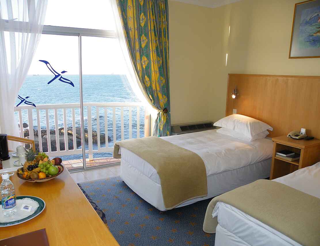73 Zimmer mit Ausblick auf die Bucht von Lüderitz und den angelagerten Badestrand. Jedes Zimmer verfügt über ein extra langes Doppelbett, En-Suite Badezimmer mit Badewanne oder Dusche, Hygieneartikeln und beheizbarem Handtuchhalter, Telefon, TV, kostenloses Wi-Fi, Kaffee-/Teestation, Klimaanlage/Heizung. Zu den Zimmern zählen 3 Luxus-Suiten mit u.a. zusätzlichen TV und privater Lounge, sowie 3 behindertengerecht eingerichtete Zimmer.