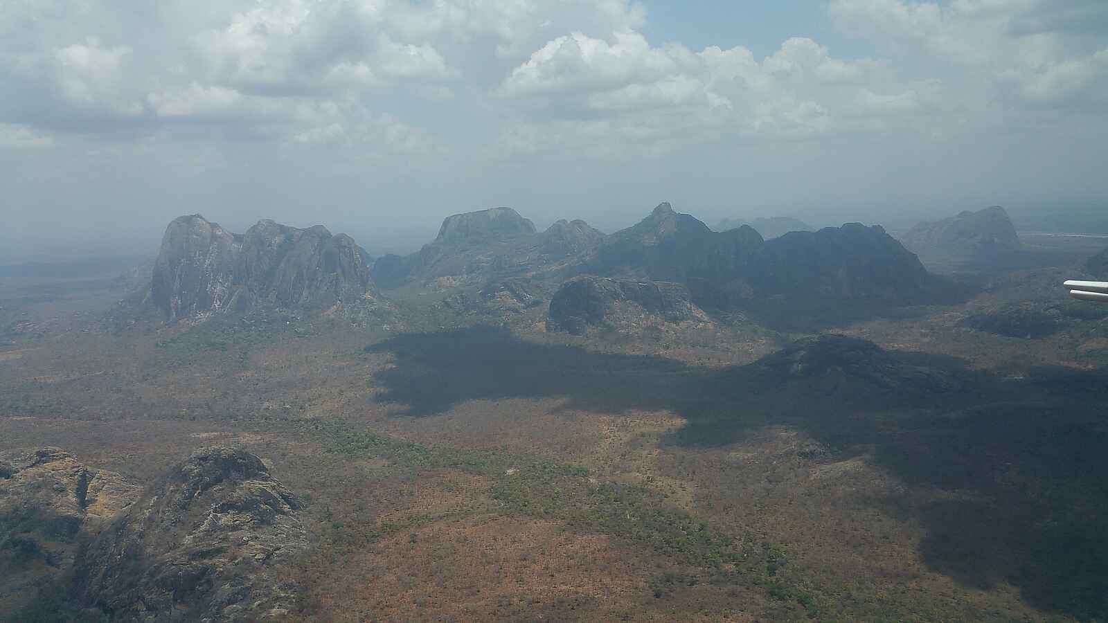 Das Camp liegt am Ufer des Lugenda River in einem schattigen Galeriewald. Vor dem Camp das 400m breite Flussbett. Hinter dem Camp erst Galeriawald, dann Sweetveld-Vegetation, später Miombo-Buschland und offene Savannen. Kulisse des Camps und aller Aktivitäten bilden die spektakulären Inselberge mit Ihren nackten, steilen Flanken.