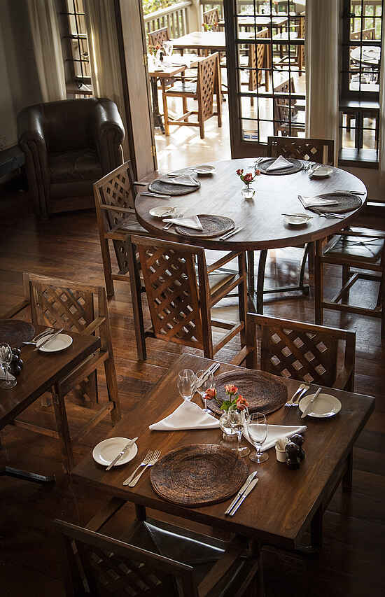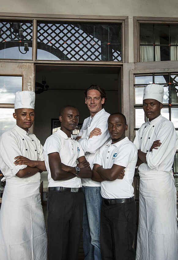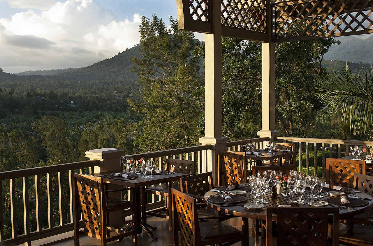 Halb- oder Vollpension inkl. aller Getränke bei Mittag- und Abendessen. Frühstück Buffet mit à la carte Eierspeisen, Mittag- und Abendessen à la carte mit täglich wechselnden Menüs, je nach Saison und Ernte. Zusätzlich gibt es tagsüber ein Bistro mit kleinen Mahlzeiten. Gespeist wird entweder in der Suite, am Pool, im Restaurant oder auf der Terrasse mit Blick auf den Mount Meru. Die Küche ist europäisch-afrikanisch unter der Leitung von Chefkoch Axel Janssens. Beispielgerichte sind: Gegrillte Kalamari nach Swahili Art, Ente mit Süßkartoffeln und Mangosauce und ein Tiramisu aus belgischer Schokolade. Weinkeller und Champagner vorhanden. Vegetarisches und koscheres Essen verfügbar. Auf Sonderwünsche wird, bestenfalls vorher angekündigt, eingegangen.