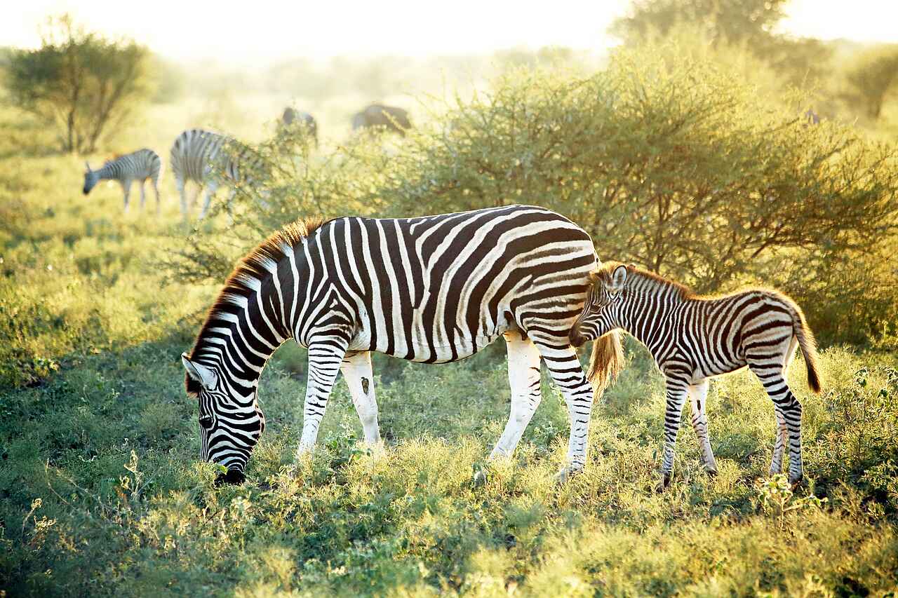 Big Five: Elefant, Leopard, Löwe, Afrikanischer Schwarzbüffel, Breit- und Spitzmaulnashorn! Zudem bekannt für den Afrikanischen Wildhund und Geparden, weiterhin Hyänen, v.a. Tüpfel, Zebras, Giraffen, diverse Antilopenarten. Insgesamt 86 Säugetier- und 420 Vogelarten, davon 110 selten.
