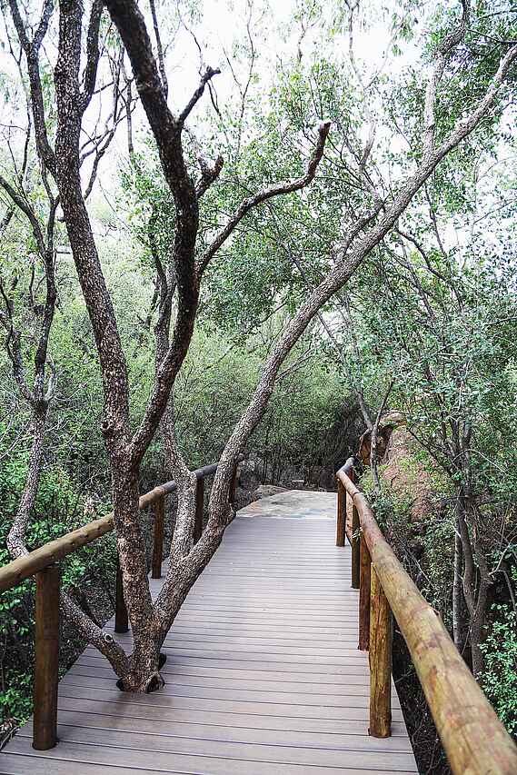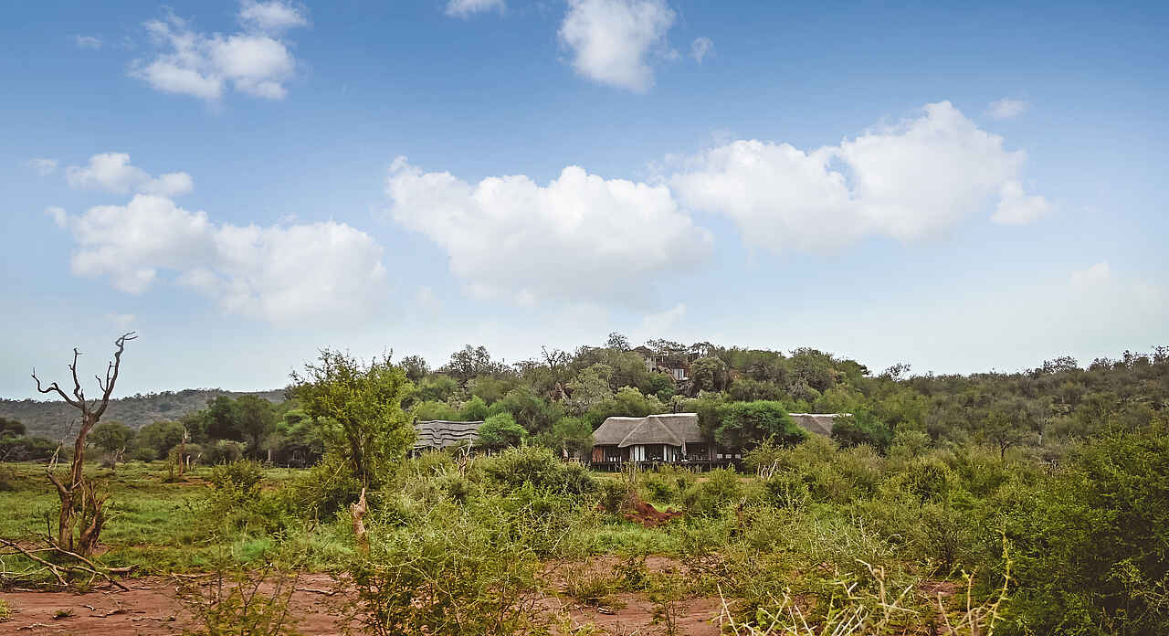 Madikwe liegt mit 75 000 Hektar Buschland entlang der Botswanischen Grenze ca. 4,5 Autostunden nordwestlich von Johannesburg. Die Madikwe Hills Private Game Lodge liegt im Nordosten des Parks auf einer Hügelkuppe, in übermannshoher Dornenbuschvegetation.