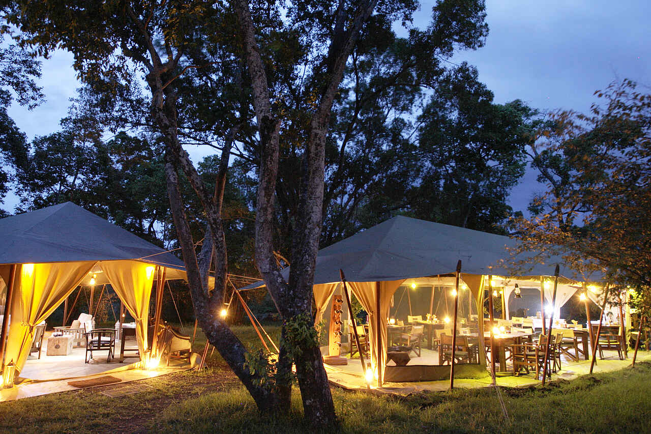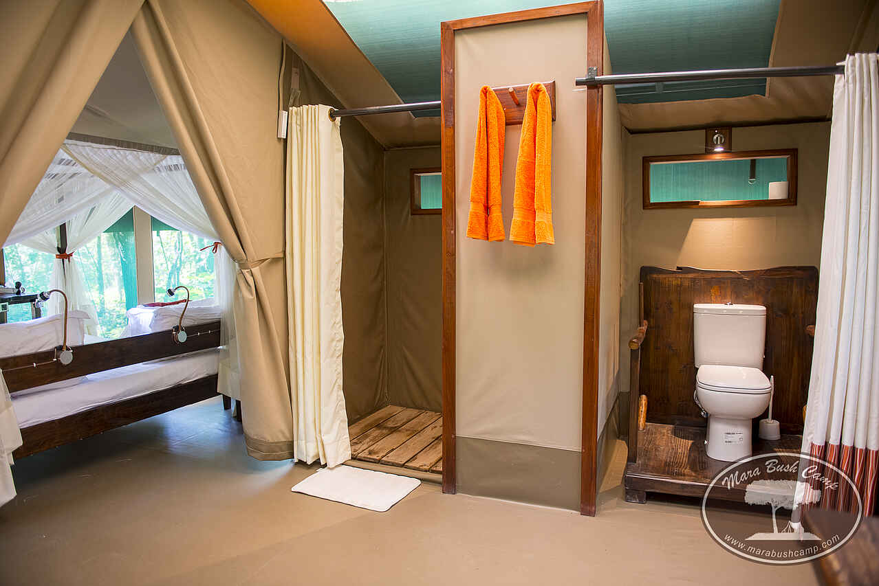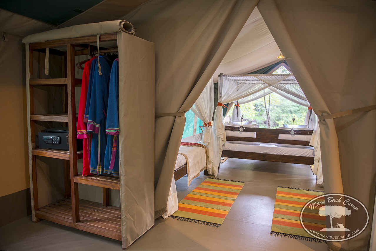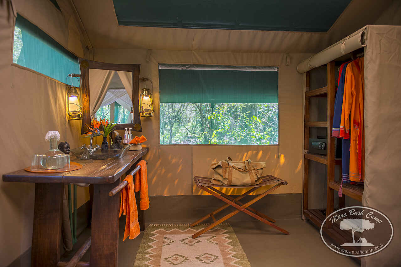 Das Mara Bush Camp liegt im Masai Mara Nationalpark, in kurzer Distanz zum Zusammenfluss des Talek und des Mara Rivers, dort wo die Millionen Tiere der Migration das Flusssystem überqueren. Das Camp selbst steht versteckt unter Bäumen direkt am Ufer des Olare Orok Rivers. Die nächste Umgebung des Camps setzt sich aus verschiedenen Landschaften zusammen: weites Grasland, kleine Wäldchen und eine Vielfalt an Flüssen, die diversen Habitats sorgen für herrliche, abwechslungsreiche Tiererlebnisse. In dieser Gegend wurde der berühmte Film über die Gepardin Maleika gedreht.