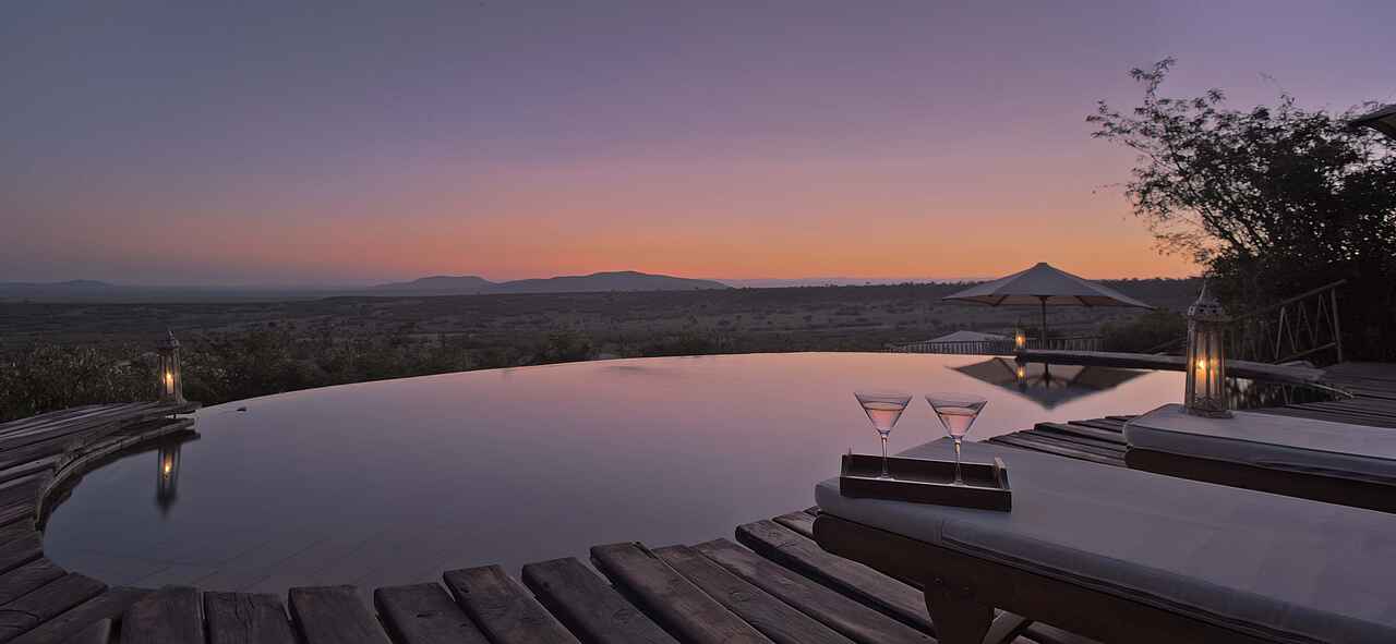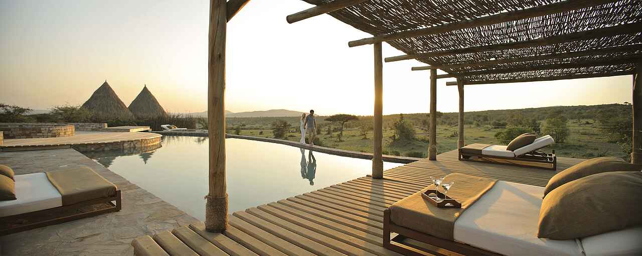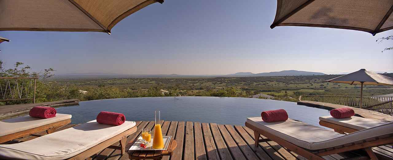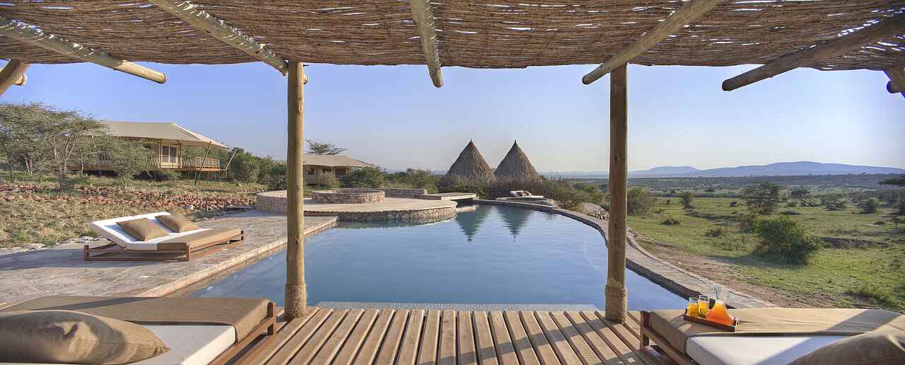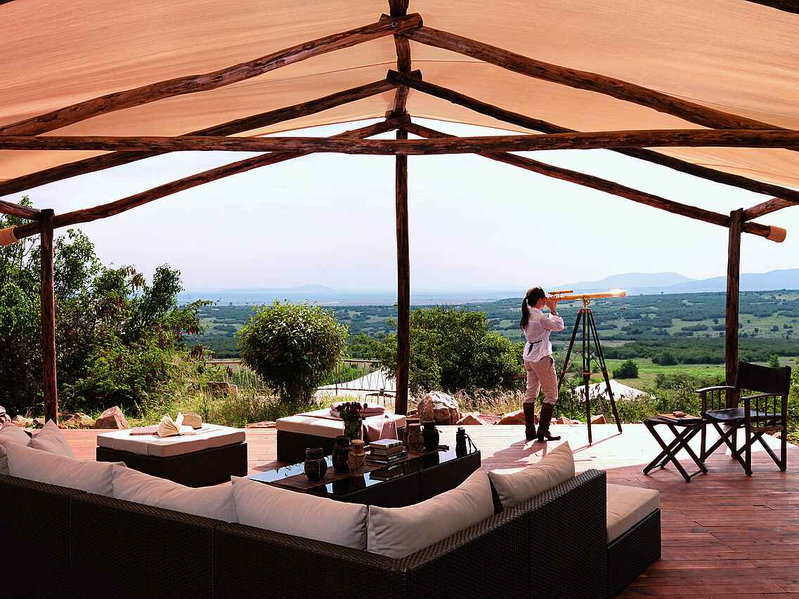 Die Zelte befinden sich auf einem gemeinsamen Areal, sind aber eigenstehend und durch Pfade zu Fuß erreichbar. Jedes Zelt besitzt ein Doppelbett, Sonnenliegen sowie einen Schreib- und Esstisch. Das Holzdeck lässt sich zu drei Seiten öffnen, um einen Panoramablick mit einem bereitstehenden Fernglas auf die Savanne mit deren Tieren zu gewährleisten. Die Zelte sind mit eigenen Waschbecken mit warmen Wasser und Toiletten ausgestattet. Duschen befinden sich im Innen- sowie Außenbereich. Mit inbegriffen ist ein 24-h Butler-Service, Stromanschlüsse und W-LAN.