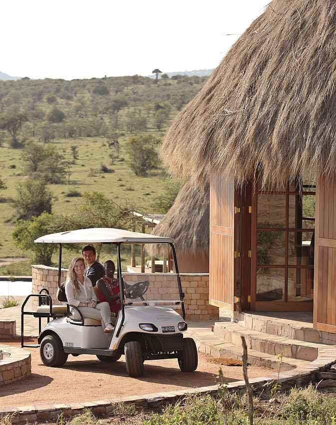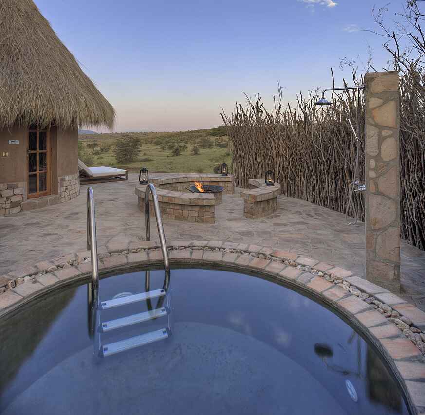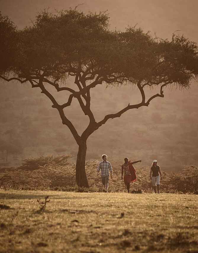 Game Drives im Geländewagen zusammen mit weiteren Gästen - auch nachts Guided Bushwalk Ballon Safari (gg. Aufpreis) Spa- und Wellnessbereich Bushfrühstück Privates Bushdinner Besuch einer vom Camp unterstützen Schule Besuch eines Masai Dorfes Besichtigung der Kakayia Cave