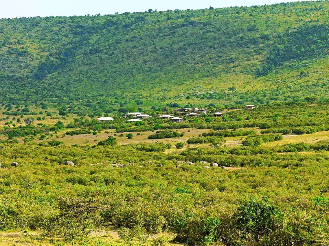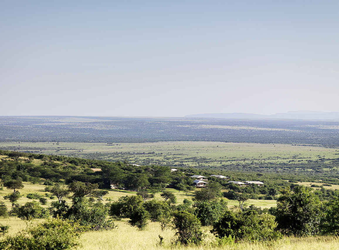 Das Mara Bushtops Camp befindet sich in ca. 1800 Meter Höhe und liegt am Hang der Siana Hills in der privaten Isaaten Conservancy. Nordöstlich grenzt das Camp direkt an den Masai Mara Nationalpark in Kenia und erweitert damit dessen Habitat. Der Blick erstreckt sich über die Savanne mit Sträuchern und Bäumen. Der Talek River ist ca. 10km vom Camp entfernt.