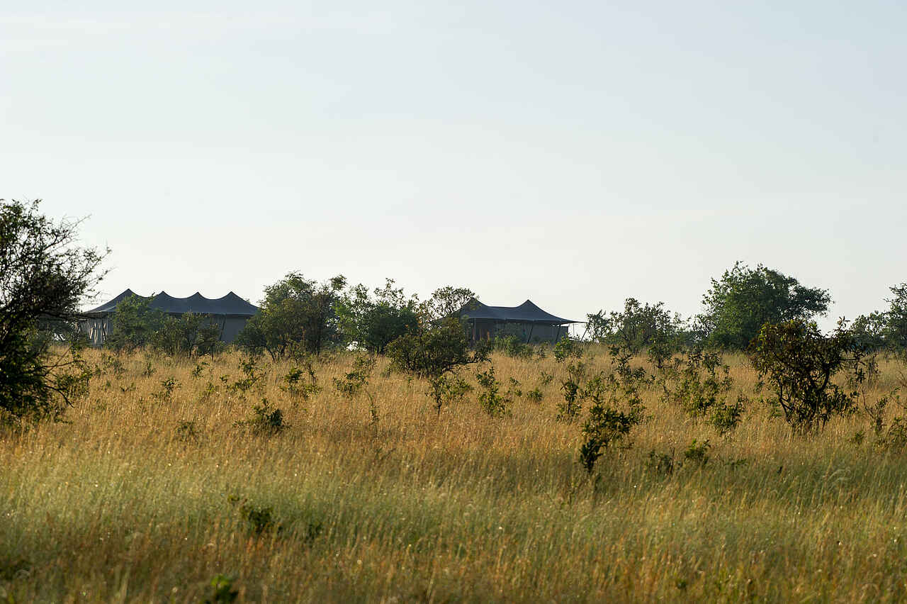 Es gibt insgesamt 15 geräumige Meruzelte, entweder als Doppelzelt oder Einzelzelt. Sie laufen in der Mitte auf ca. 3 Meter hin. Sie stehen jeweils auf soliden Holzplattformen und sind im Gelände verteilt, ca. 50 Meter auseinander. Sie sind so angelegt, das von einer kleinen Erhöhung aus der bestmögliche Blick in die Landschaft ermöglicht wird. Die Außenhaut des Zeltes besteht aus olivfarbenem Segeltuch, die Innenhaut aus hellem Stoff. Die Seitenwände können mehrheitlich zusammengeschoben oder gerollt werden, sodass man einen direkten Blick in die Landschaft hat. Der Zugang erfolgt durch solide Glastüren. Die Holzplattformen bieten genug Raum für eine große Terrasse mit zwei Segeltuchstühlen und Tischen. Der Innenraum ist so groß, das genügend Platz für entweder ein Kingsize-, oder ein Doppelbett ist und eine Sitzgruppe mit gepolsterten Lehnstühlen und einem kleinem Schreitisch. Das Design des Interieurs ist an einem hellen, schlichten und sehr dezenten Landhausstil orientiert, was sich maßgeblich in der Verwendung heller Hölzer und Holzbohlen artikuliert. Das Bad ist durch eine mannshohe Holzwand vom Schlafbereich getrennt. Sie verfügen über ein Wasserklosett, Waschbecken und Dusche mit Warmwasser.