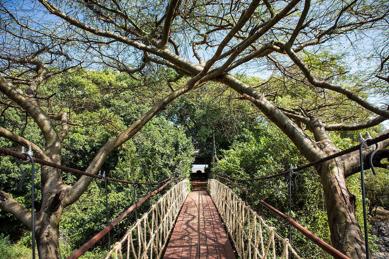 Die ersten Ahs und Ohs gibt es bereits beim Betreten des Camps, das man über eine romantische Hängebrücke erreicht. Es schmiegt sich mit seinen naturfarbenen Zelten unauffällig unter die Bäume, die entlang des Ntiakitiak-Flusses Schatten spenden. Die Hauptattraktion ist die davor liegende Masai Mara mit ihren schier endlosen Weiten.