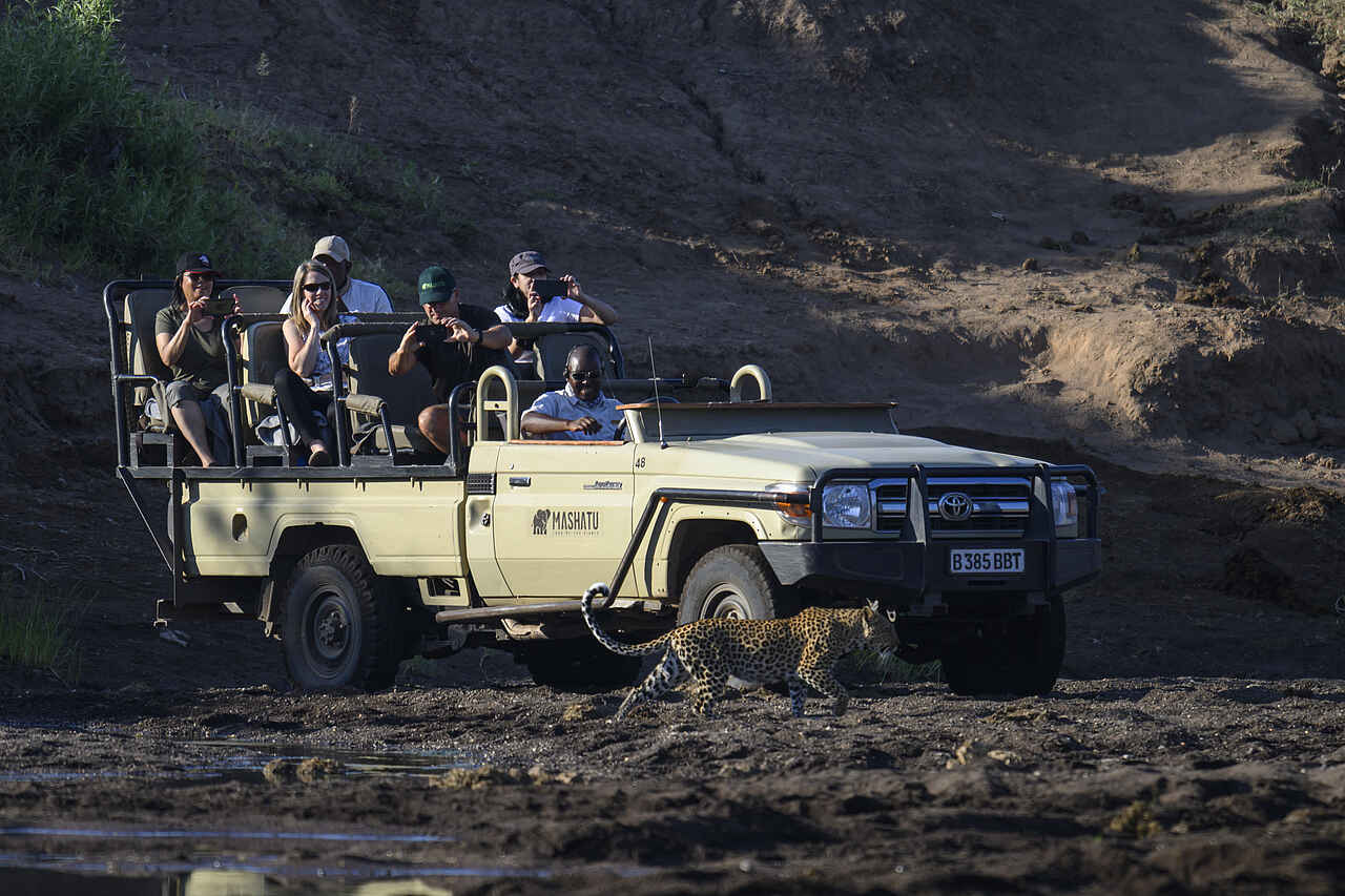 Der Schwerpunkt liegt auf Pirschfahrten im Mashatu Game Reserve, die am frühen Morgen und am späten Nachmittag stattfinden. Nachtfahrten im privaten Schutzgebiet erweitern das Safari Erlebnis und eröffnen Einblicke in das Verhalten nachtaktiver Tiere. Ergänzend dazu bieten geführte Buschwanderungen, Fahrradsafaris und Reitsafaris abwechslungsreiche Perspektiven auf Landschaft und Tierwelt. Auch kulturelle Begegnungen mit lokalen Gemeinden lassen sich arrangieren.