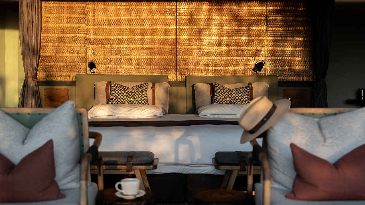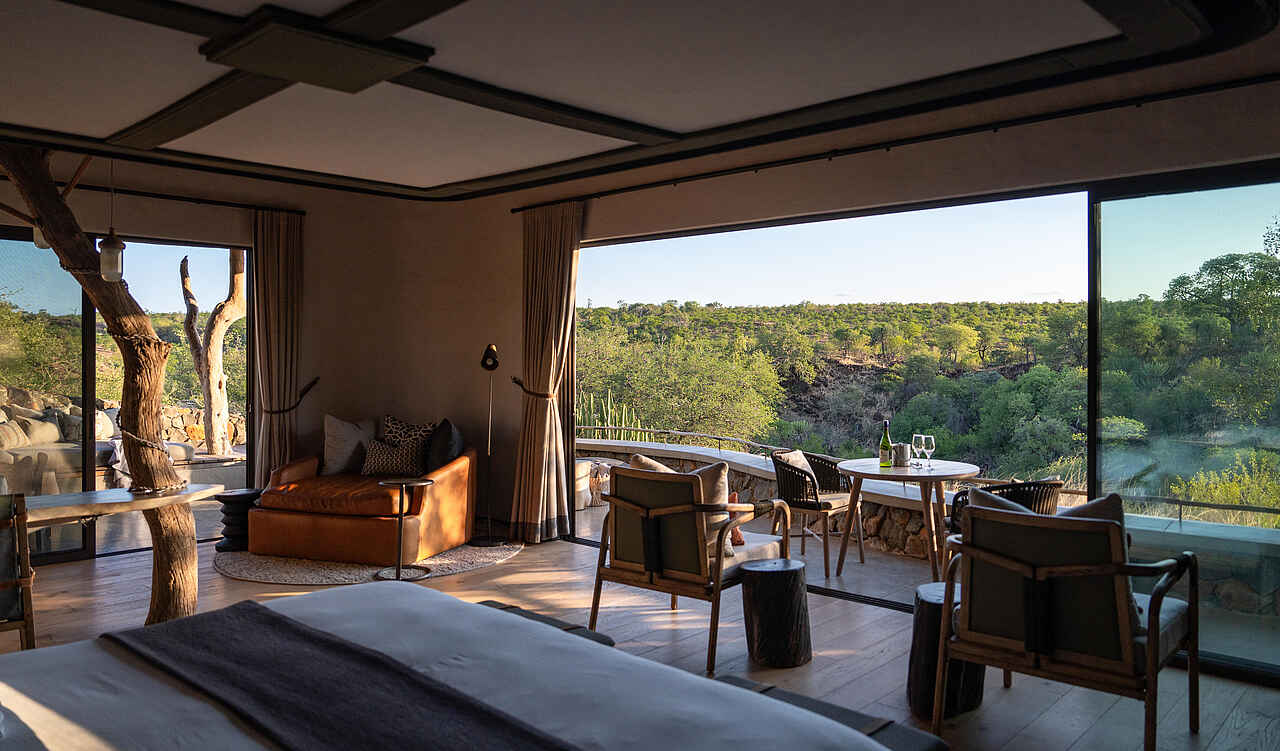 Jede der acht freistehenden Mashatu Euphorbia Villas verfügt über ein großzügiges Schlafzimmer, einen separaten Wohnbereich und einen beheizten Plunge Pool auf der Terrasse mit Blick in die Landschaft. Das Design greift Elemente des Mopane Baumes auf, der für die Tierwelt der Region eine wichtige Rolle spielt, und setzt auf natürliche Materialien sowie klare Linien.