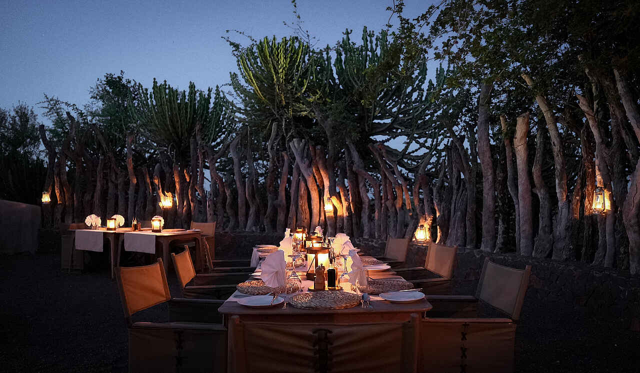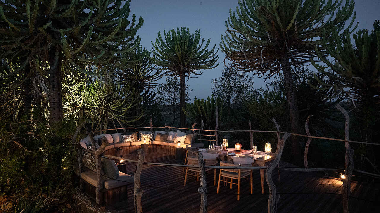Die Verpflegung ist auf den Safari Alltag abgestimmt und wird täglich frisch zubereitet serviert. Gegessen wird je nach Wetter im Speisebereich, auf der Terrasse oder im Freien. Am Abend bildet die Feuerstelle einen ruhigen Rahmen für das Dinner. Alle Mahlzeiten sowie ausgewählte Getränke sind inbegriffen. Auf besondere Ernährungsbedürfnisse kann nach vorheriger Absprache Rücksicht genommen werden.