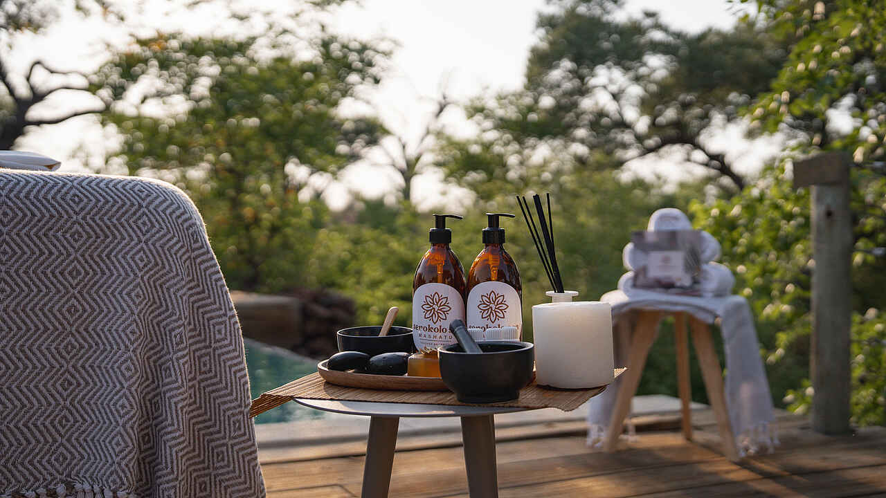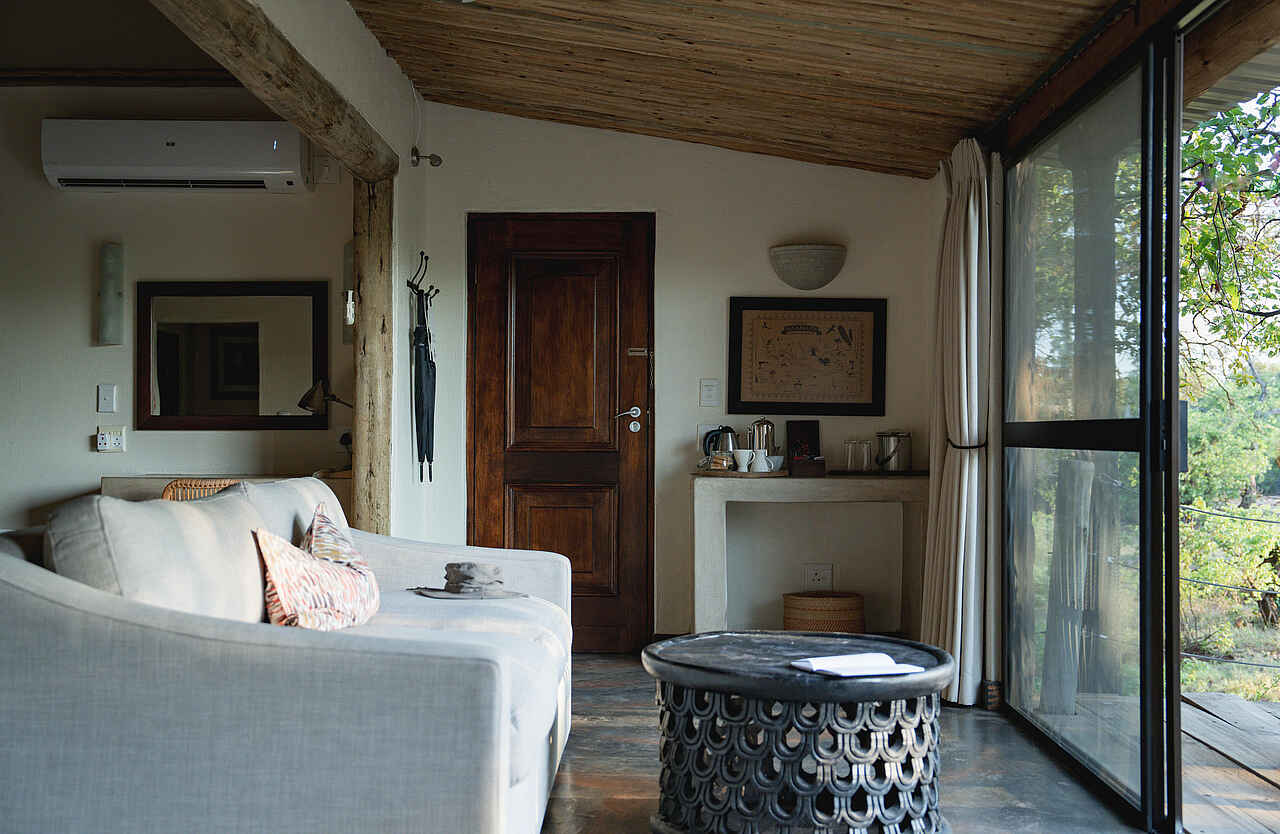 Ein separater Lounge-Bereich mit einem Tagesbett bietet zusätzlichen Komfort und lädt zum Entspannen ein. Die geräumigen En-suite-Badezimmer sind hochwertig ausgestattet und verfügen über eine stilvolle Badewanne, eine Dusche und eine separate Toilette. Jede der Suiten verfügt über eine private Veranda, die mit bequemen Stühlen ausgestattet ist. Hier können Gäste in aller Ruhe die beeindruckende Aussicht genießen und die Tierwelt am Wasserloch beobachten.