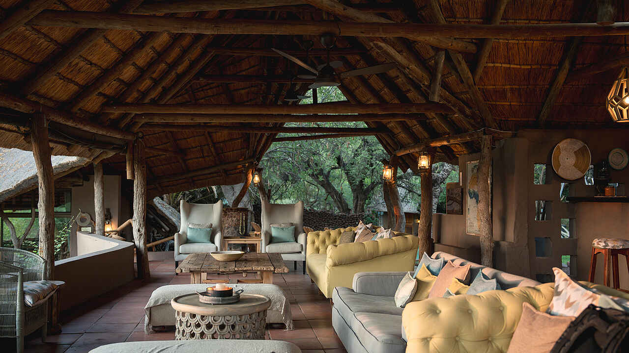 Die zentrale Lounge der Mashatu Lodge besticht durch ihre elegante Einrichtung und lädt mit bequemen Sitzgelegenheiten zum Verweilen ein, während man den herrlichen Ausblick auf die umliegende Landschaft genießt. Hier steht auch kostenfreies WLAN zur Verfügung. Der stilvoll dekorierte Speisebereich schafft ein ansprechendes Ambiente, in dem Gäste ihre Mahlzeiten in vollen Zügen genießen können. Zwei großzügige Pools sorgen nach einer Safari für willkommene Entspannung, und die Boma, ein traditioneller Essbereich im Freien, bietet die ideale Atmosphäre für Abendessen unter dem funkelnden Sternenhimmel.