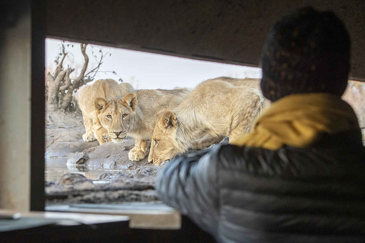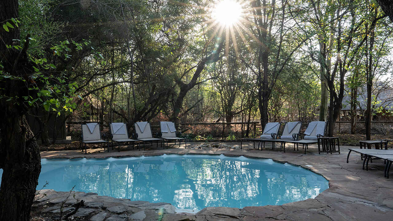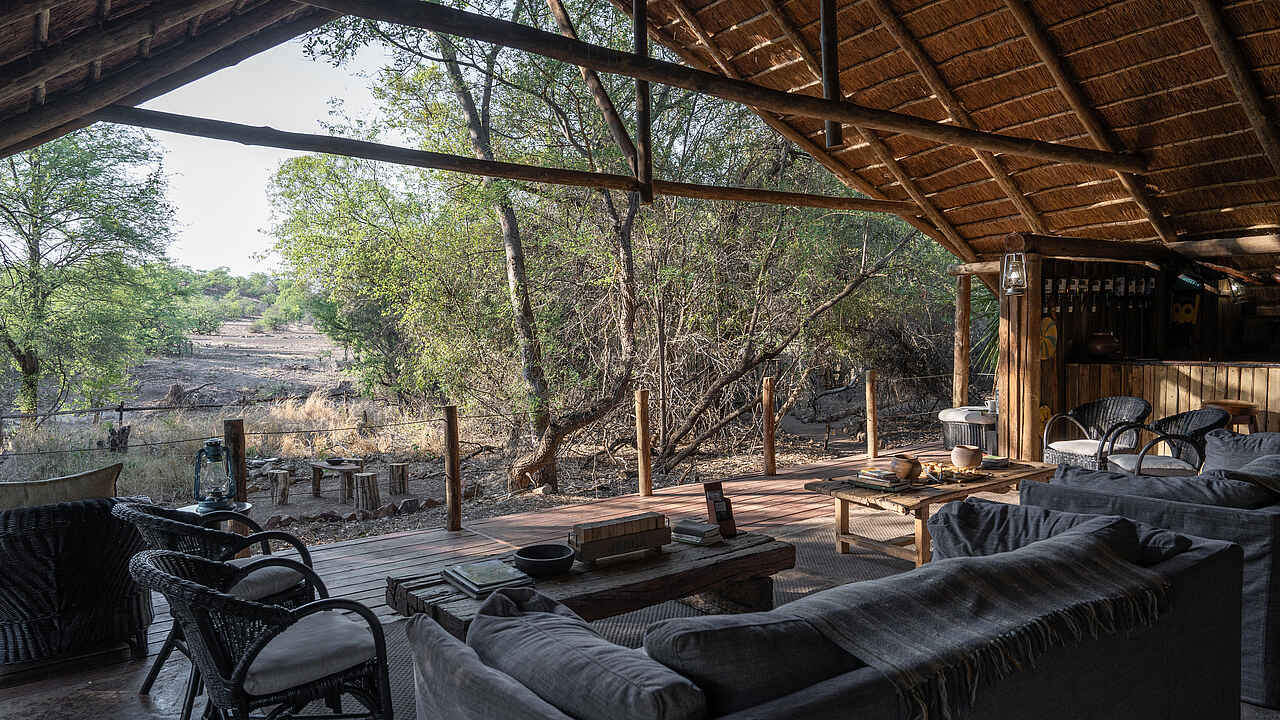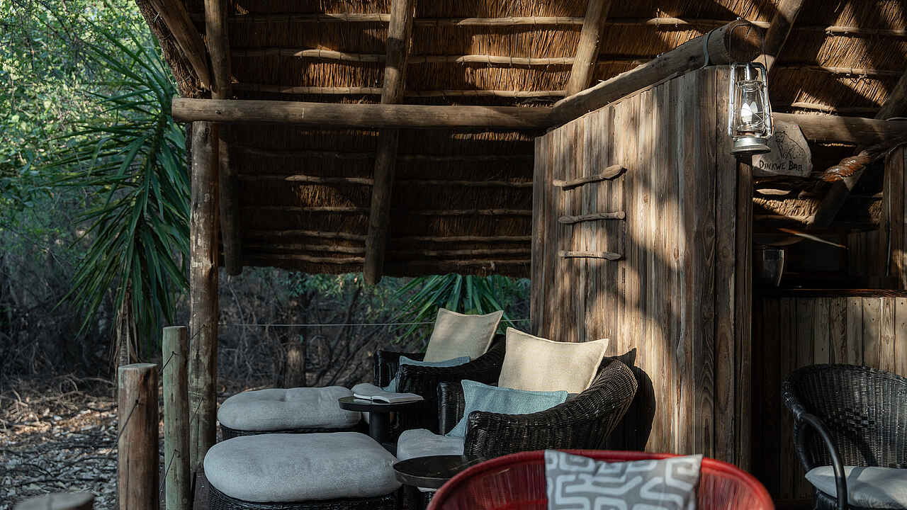 Das Mashatu Tent Camp verfügt über eine zentrale Lounge, die im offenen Stil gestaltet ist und einen herrlichen Blick auf die Umgebung bietet. Die Lounge ist mit komfortablen Sitzgelegenheiten und einer kleinen Bibliothek ausgestattet. Ein Pool bietet Erfrischung nach den spannenden Safari-Aktivitäten und Abends können Gäste in der Boma, einem traditionellen Lagerfeuerplatz, unter dem afrikanischen Sternenhimmel speisen. Ein besonderes Highlight ist das nahegelegene Wasserloch, an dem sich viele Wildtiere versammeln. Ein schattiger Unterstand ermöglicht eine ungestörte Beobachtung der Tiere. Kostenloses WLAN steht in der Lounge zur Verfügung, und ein kostenfreier Wäscheservice rundet die Annehmlichkeiten ab.