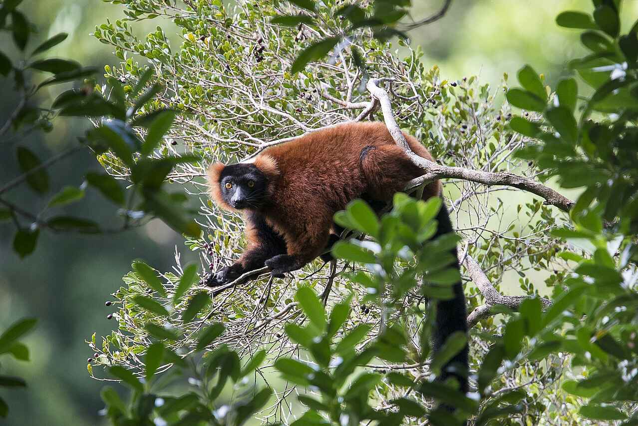 11 verschiedene Lemurenarten, darunter Rote Varis, Fingertiere (Aye-Ayes), Masoala-Gabelstreifenmakis, Büschelohrmakis, Große Fettschwanzmakis, Westliche Gabelstreifenmakis, Scott’s Wieselmakis, Westliche Bambuslemuren, Weißkopfmakis, Gürtelvari, Masoala-Wollmakis