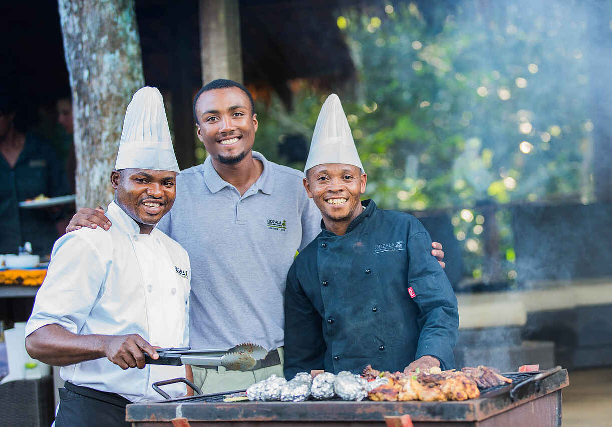 Vollpension. Frühes, leichtes Frühstück mit Kaffee oder Tee; nach der Morgenaktivität ausführlicher Brunch, gegen 15 Uhr High Tea; auf die Nachmittagsaktivität folgt ein Sundowners, so dann das Dinner oder ein Barbeque. Gespeist wird gemeinsam, privates Dinner auf Anfrage. Getränke sind inkludiert, ausgenommen Premiummarken.