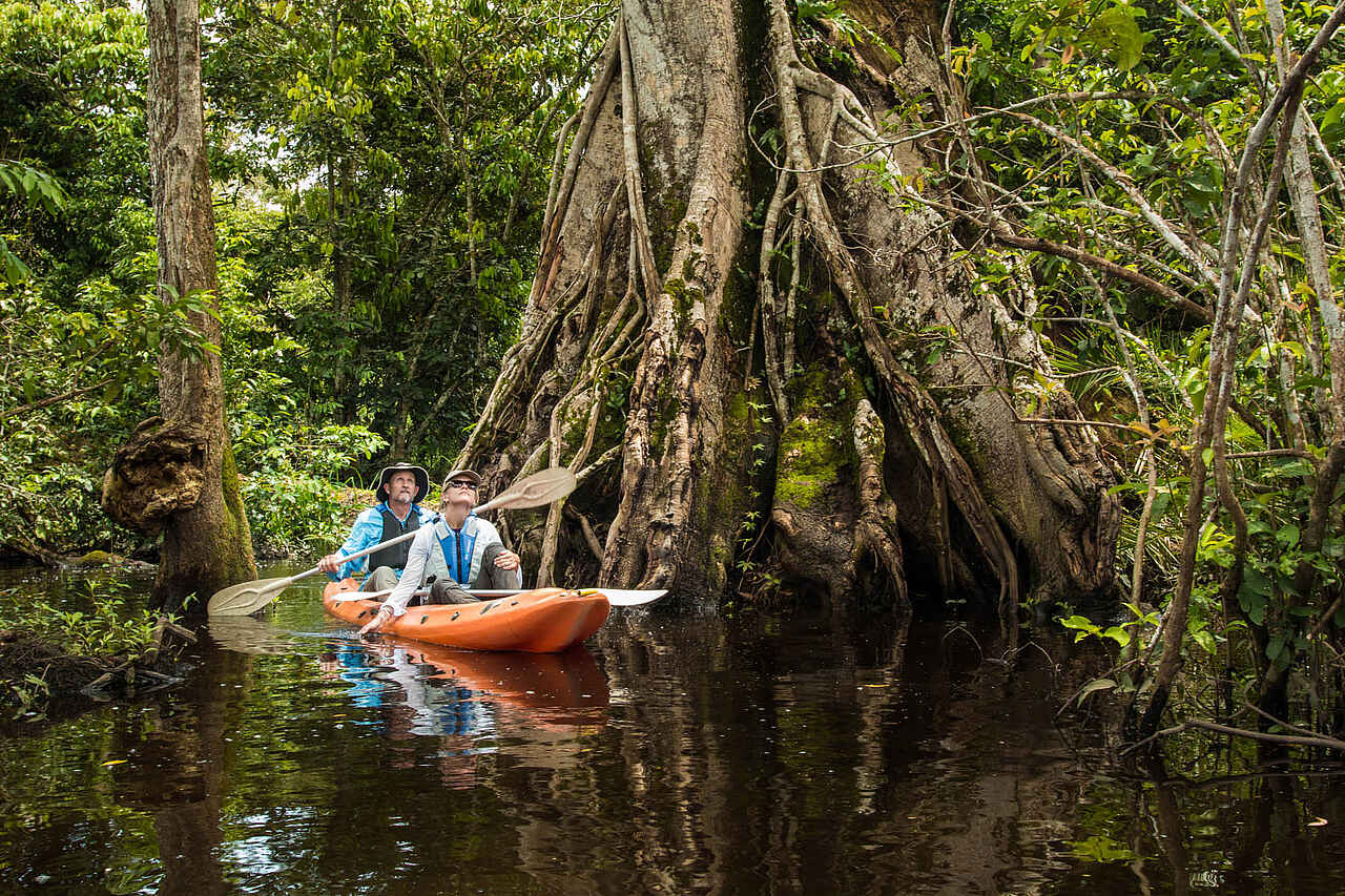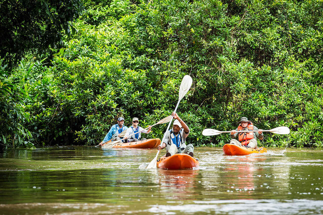 Das Mboko Camp strahlt im Vergleich zum Ngaga Camp und dem Lango Camp den Charme des Konventionell-Bodenständigen. Es gibt mehr Unterkünfte und die sind größer sowie im Stil klassischer Meru-Zelte gehalten, wie man sie typischerweise auf Safari antrifft. Unkonventionell sind hingegen die vielen Pirschfahrten im Kajak und dem Motorboot - ein ganz anderes Erlebnis als in den beiden Schwestercamps.