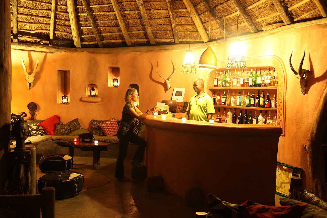 Das Hauptgebäude mit Bar, Restaurant, Lounge und Pool liegt mit Blick auf den Park und ist ein friedlicher Rückzugsort zum Entspannen und Erholen, um Sonnenauf- und -untergang zu beobachten und am Abend bei einem Lagerfeuer den Tag ausklingen zu lassen. Der Infinity Pool lädt tagsüber zum Relaxen ein und ist an heißen Tagen eine wilkommene Abkühlung. Von der Busch-Baby-Plattform läßt sich die Aussicht bestens genießen. Abends kann man mit etwas Glück das ein oder andere Buschbaby entdecken. Buschböcke, Impalas und Warzenschweine sind regelmässige Besucher der Lodge