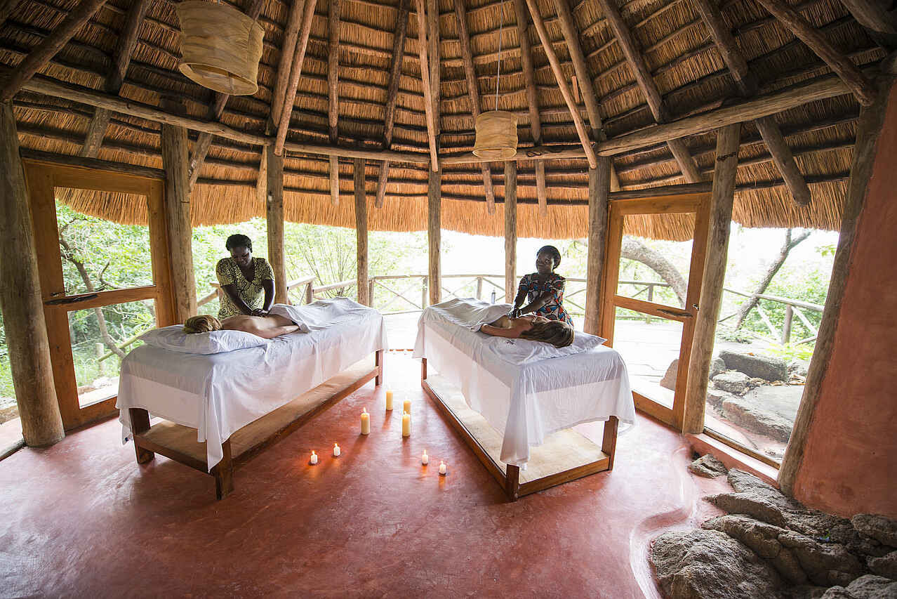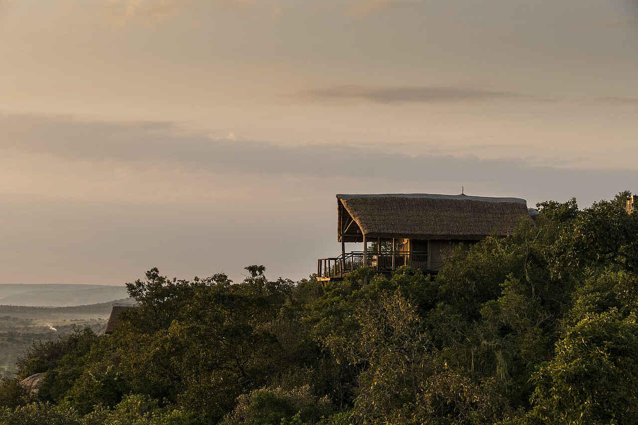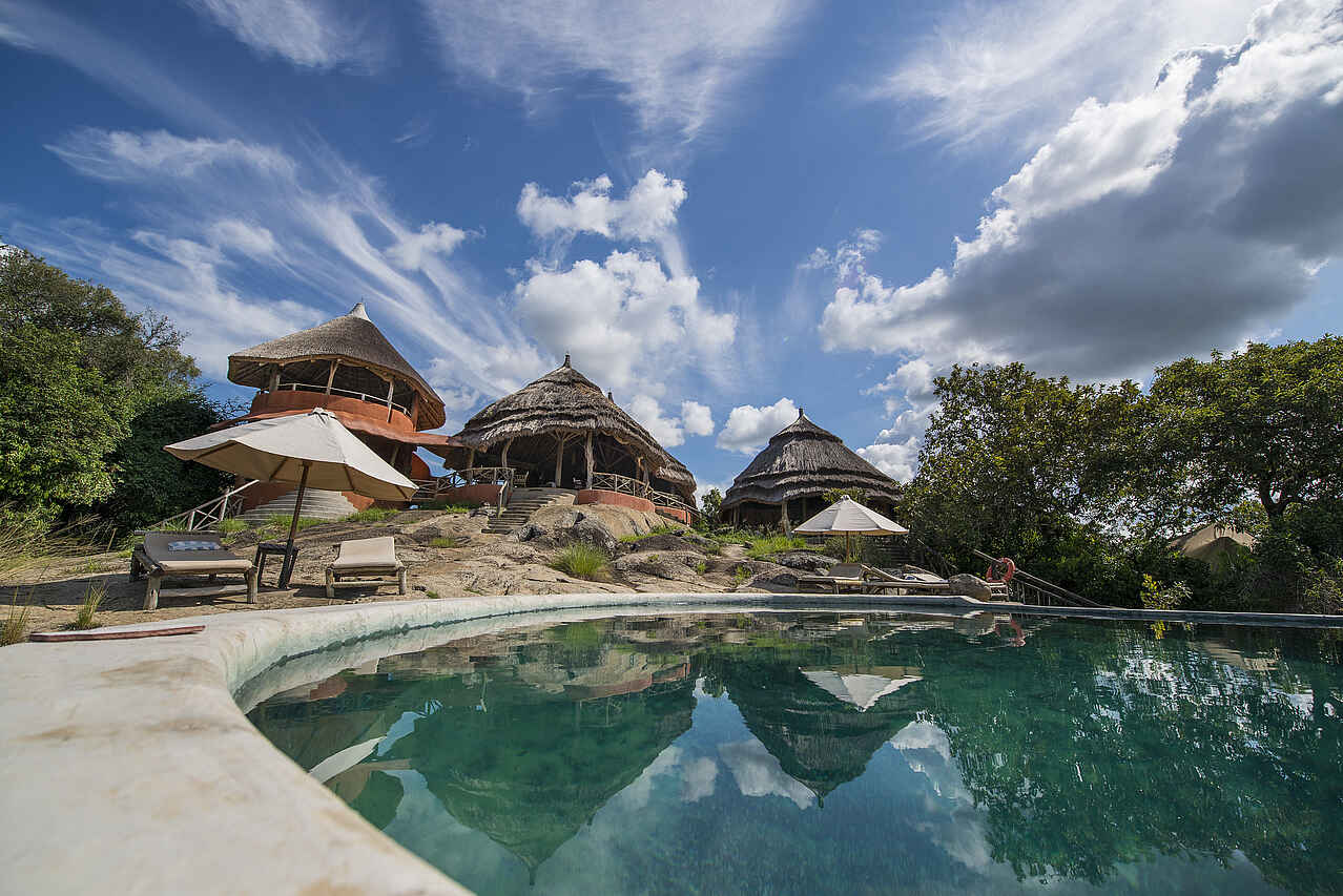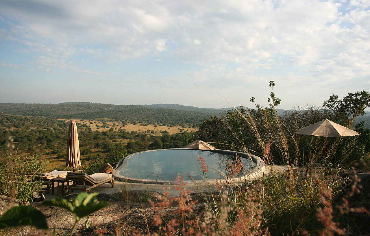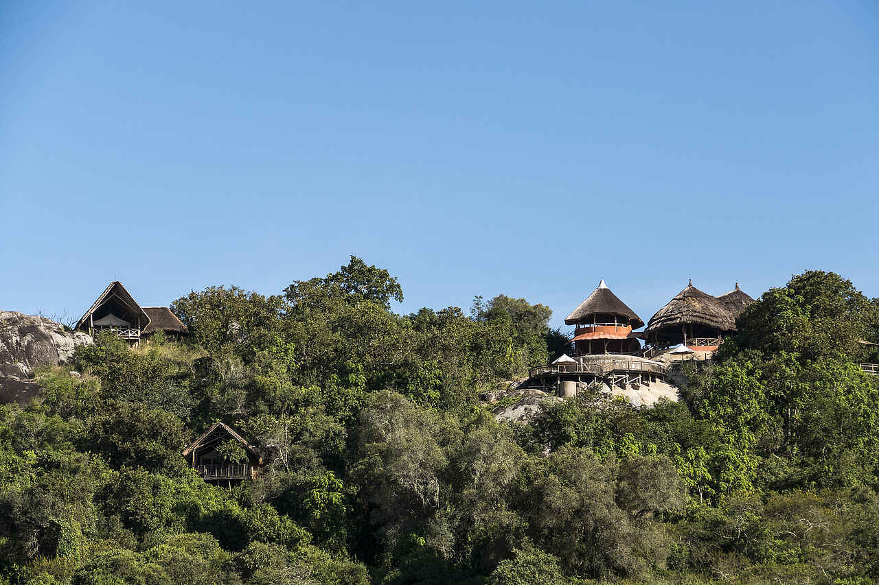 Die Mihingo Lodge befindet sich an einer Felsklippe im Lake Mburo Nationalpark.