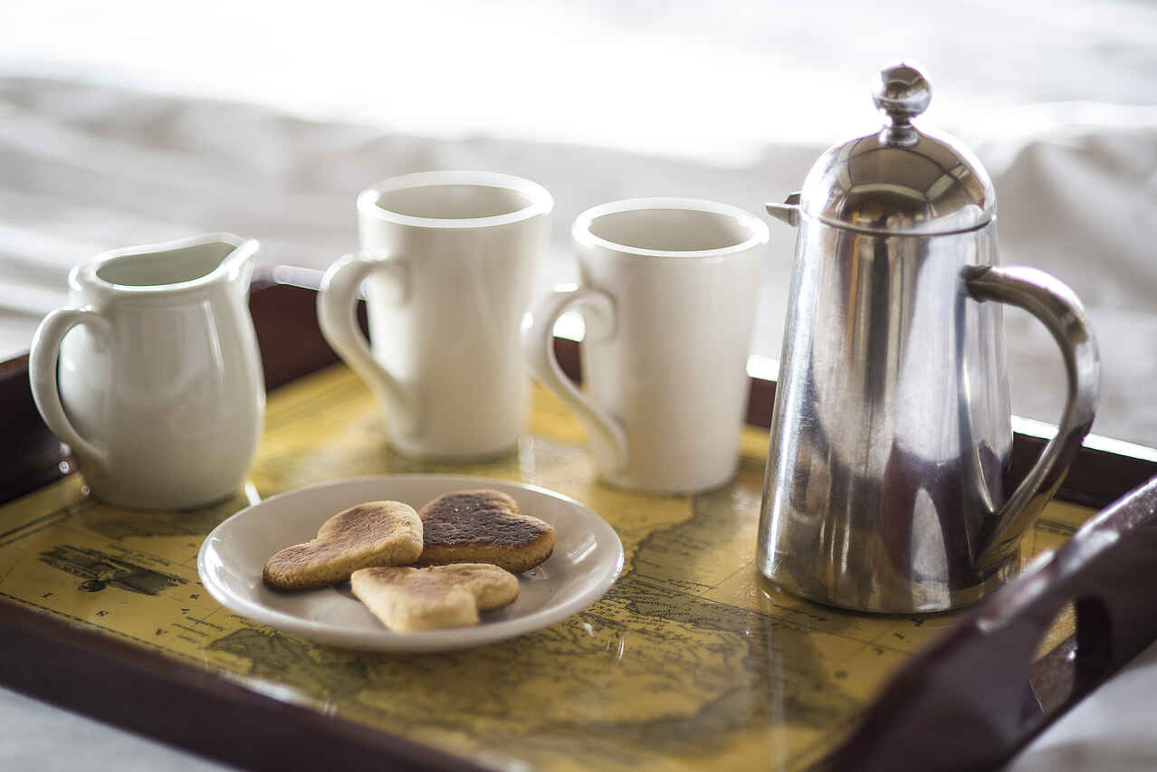 Vollpension. Komplettes englisches Frühstück mit hausgemachtem Joghurt, Müsli, frischem Obst und Fruchtsäften, 3-Gänge Mittag- und Abendessen nach einem festgelegten Menü. Getränke sind nicht inklusive. Verschiedene Diät-Anforderungen können auf Wunsch erfüllt werden, soweit zuvor angekündigt.