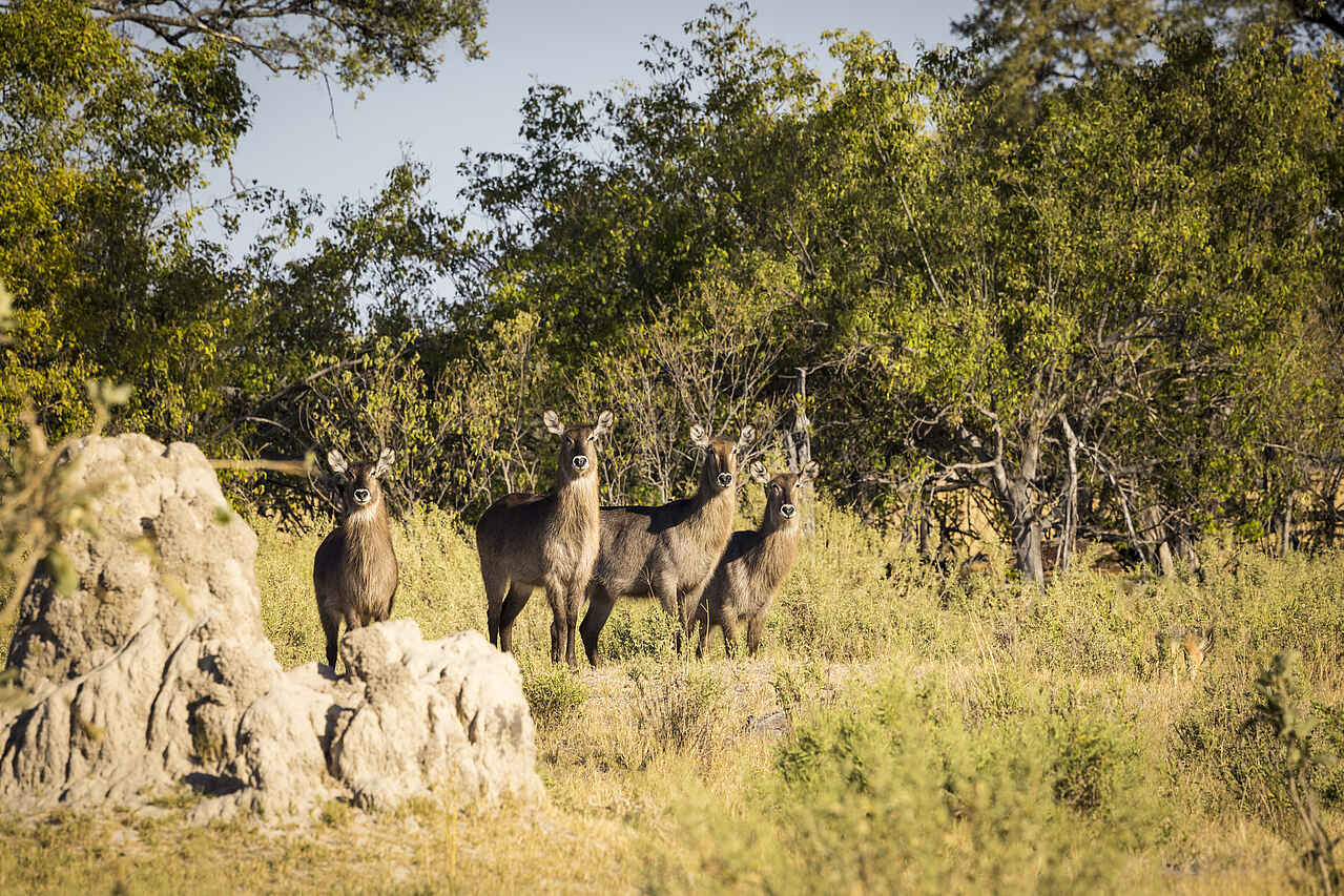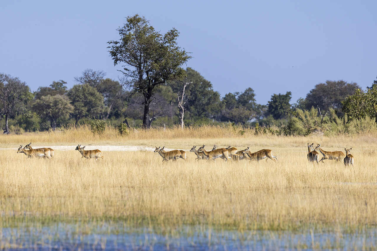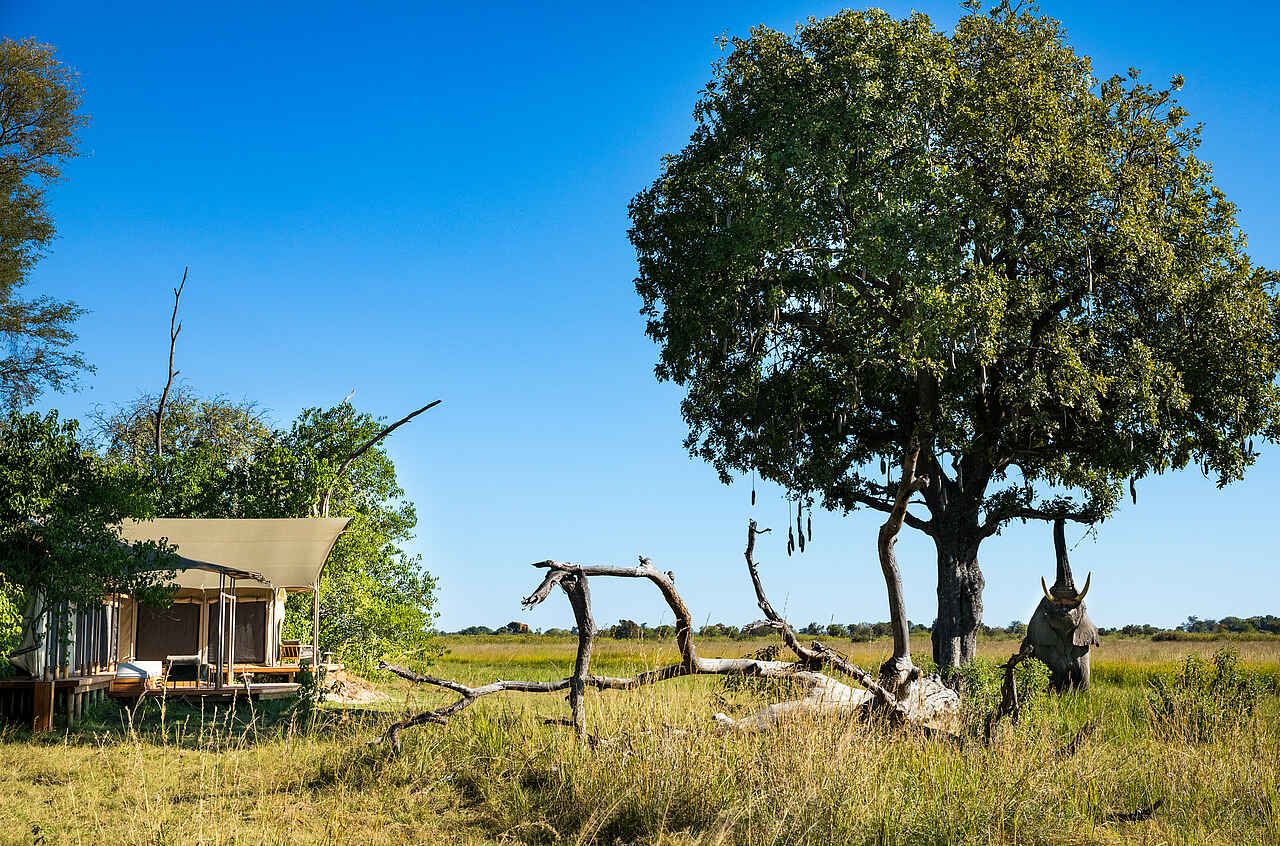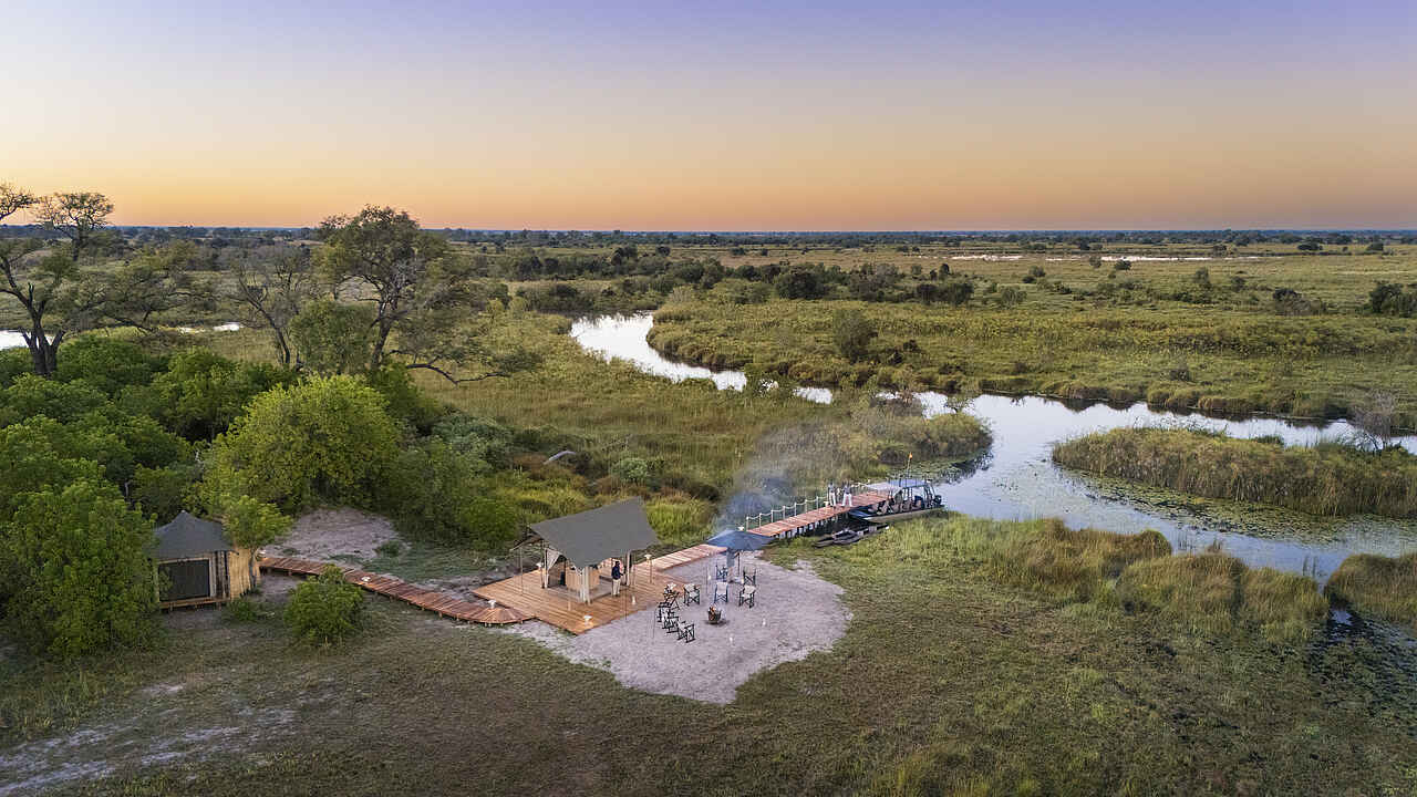 Das Camp befindet sich am Rande des Monachira-Kanals, in unmittelbarer Nähe der berühmten Gudigwa-Reiherkolonien, einem Brutgebiet von Tausenden von Reihern, Störchen und Ibissen. In den umliegenden Inseln und Überschwemmungsgebieten entlang der permanenten Kanäle des Monachira-Flusses besteht die Möglichkeit, eine Vielzahl von Wildtieren zu beobachten, darunter Elefanten, Löwen, Leoparden, Flusspferde und Büffel. Auch zahlreiche Antilopenarten wie Kudus und Rote Letschwes können hier gesichtet werden. Darüber hinaus gibt es die Chance, die scheuen Pels Fischereulen und die seltene Sitatungas, halb-aquatische Sumpfantilopen, zu entdecken. Die vielfältige Vogelwelt, einschließlich Fischadler und Malachit-Eisvögel, macht dieses Gebiet zu etwas Besonderem für Vogelbeobachter.