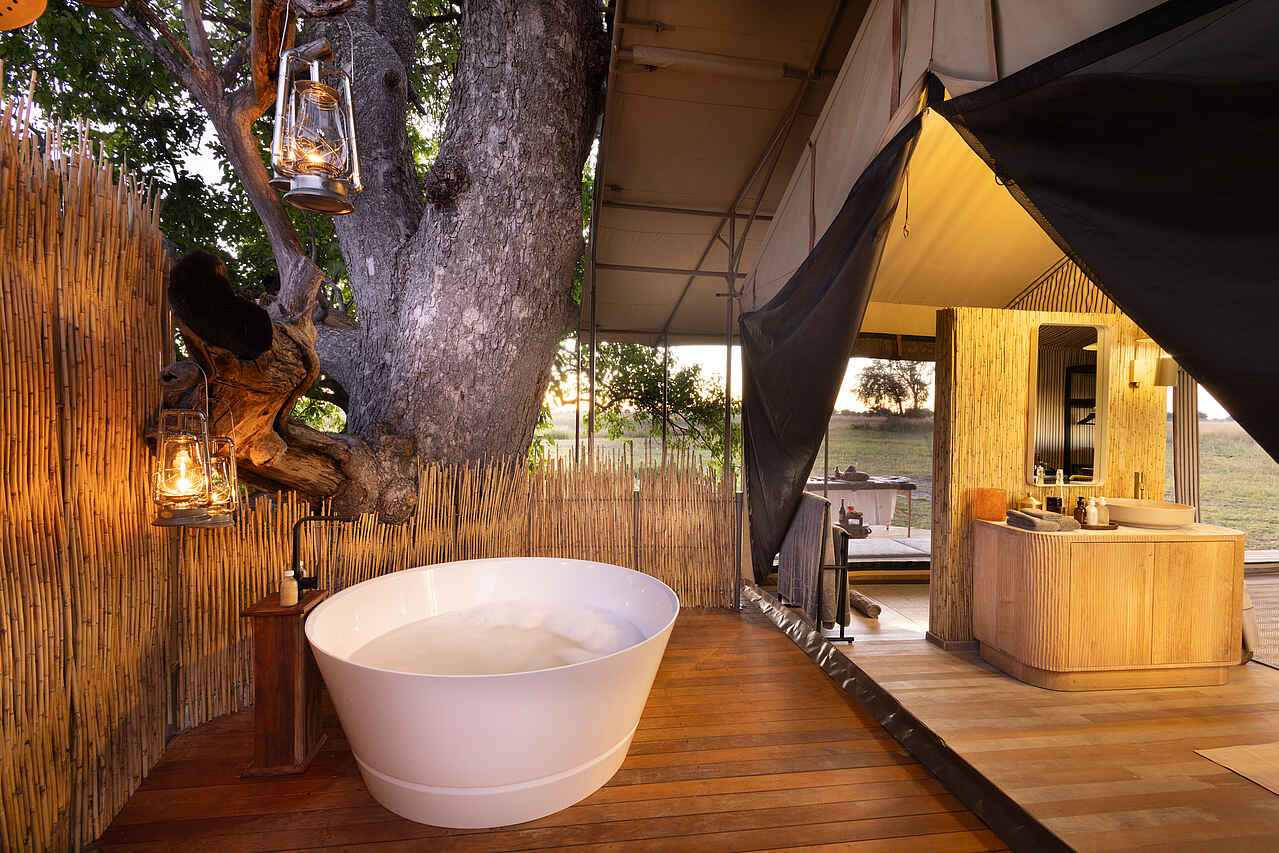 Im Monachira Camp findet sich eine großzügige zentrale Lounge mit gemütlichen Sitzbereichen und einer einladenden Bar. Eine gut bestückte Bibliothek lädt zum Verweilen und Schmökern ein, während im angrenzenden Speisebereich köstliche Mahlzeiten serviert werden. Der Souvenirladen vor Ort hält eine Auswahl an lokaler Handwerkskunst bereit, ideal für Erinnerungsstücke oder Geschenke. Nach einem spannenden Safaritag sorgen zwei Plungepools für eine erfrischende Abkühlung. Den Tag kann man stilvoll an der offenen Boma, unter dem afrikanischen Sternenhimmel, ausklingen lassen und Safari-Geschichten austauschen.