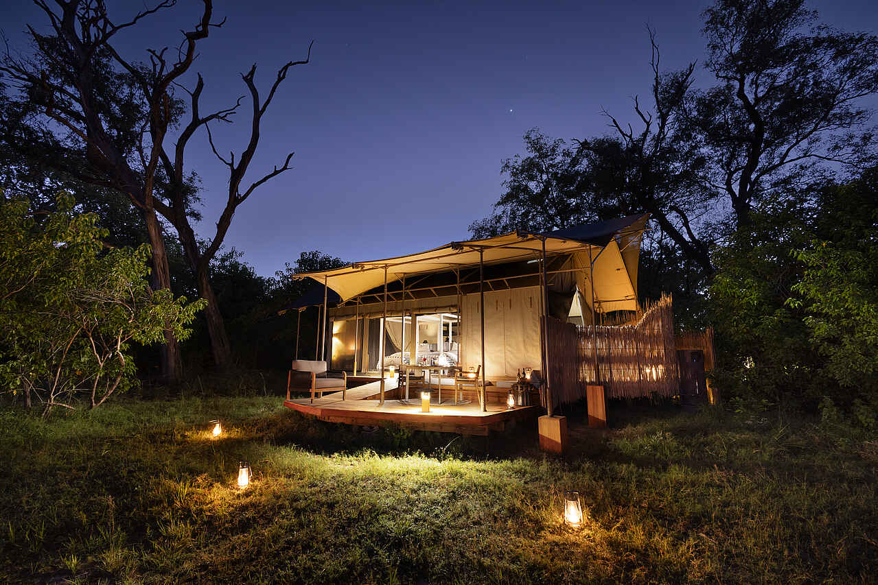 Das Monachira Camp befindet sich im Herzen des Okavangodeltas in Botswana, am Ufer des Monachira-Kanals im Moremi-Wildreservat. Von hier aus bietet sich ein beeindruckender Ausblick auf die umliegenden Überflutungs- und Feuchtgebiete. Die 10 Zeltsuiten sind im Stil traditioneller afrikanischer Safaris geschmackvoll eingerichtet. Sie verfügen über komfortable Betten, En-suite-Badezimmer und eigene Veranden. Das Camp umfasst eine zentrale Lounge, eine Bar, eine Bibliothek, zwei Plungepools und eine offene Boma.
