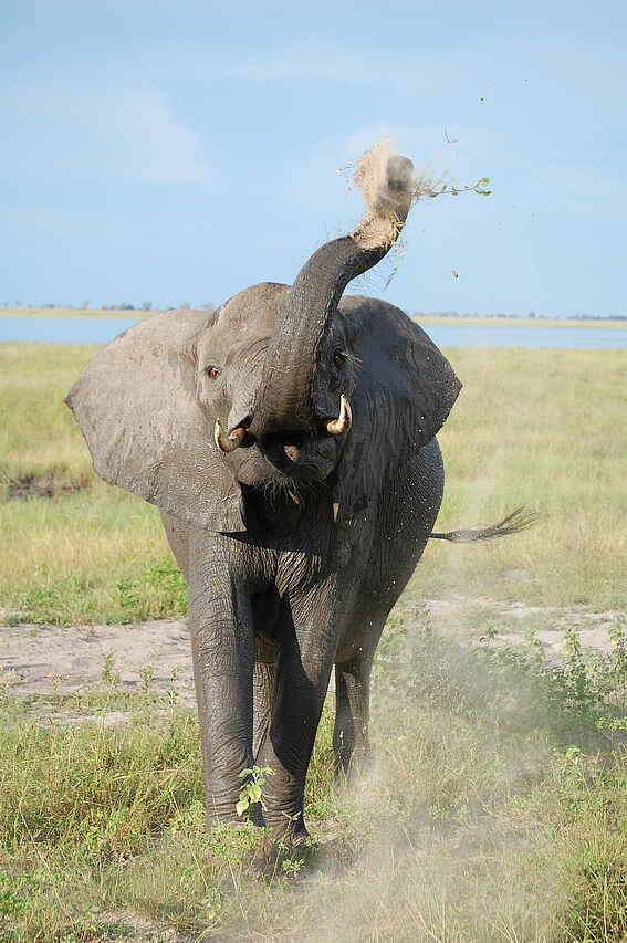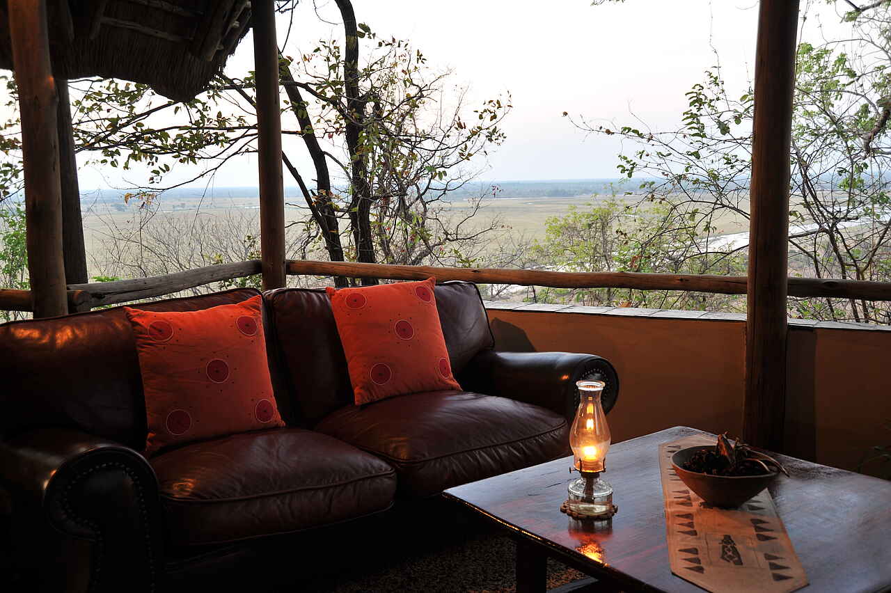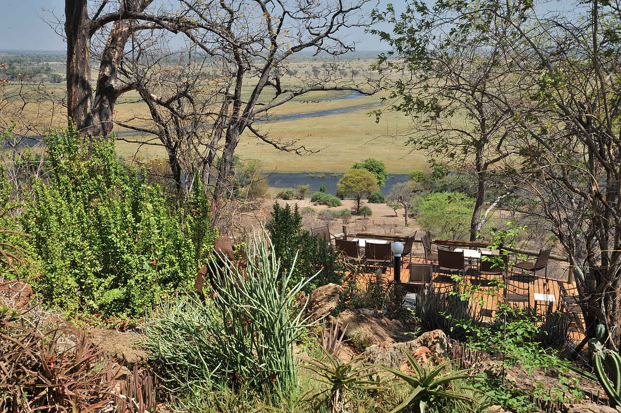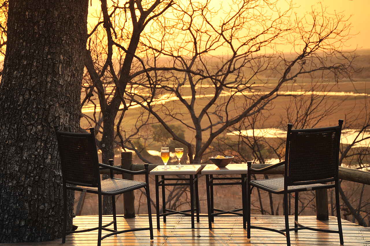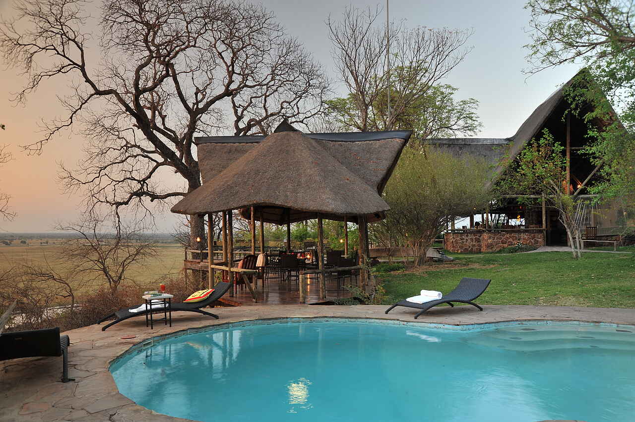 Die Muchenje Safari Lodge liegt an einem Steilhang über dem Chobe River und besticht durch ihren wunderschönen Ausblick. Der Chobe National Park präsentiert sich hier auf der westlichen Seite deutlich ruhiger als in Kasane.