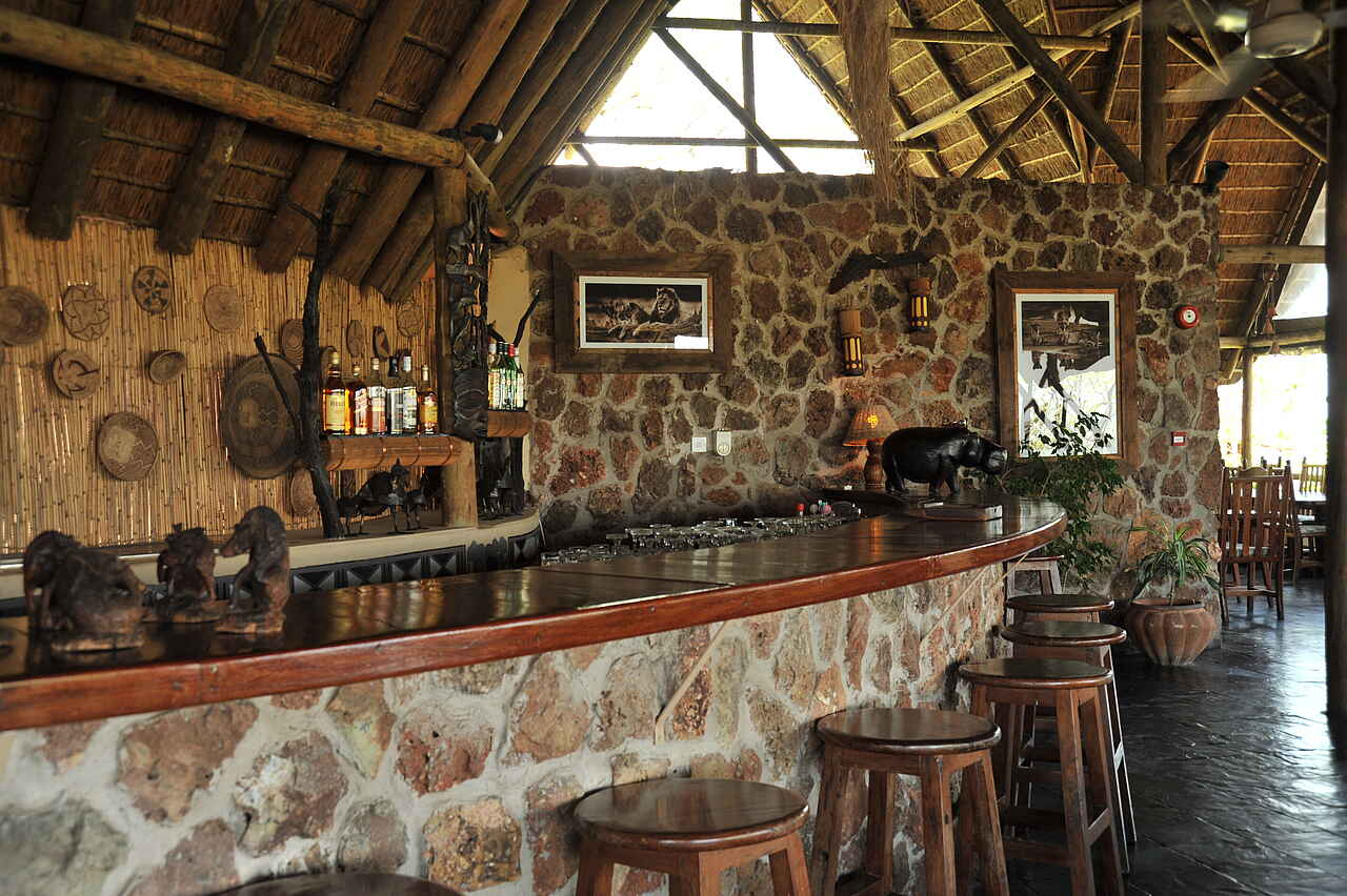 Im Hauptgebäude der Muchenje Safari Lodge befinden sich der Speisesaal, eine Bar und die Lounge. Direkter Zutritt auf die Terrasse mit Blick über den Chobe, Swimmingpool neben dem Hauptgebäude, ebenfalls mit Aussicht. Kleine Bibliothek, Souvenirladen.