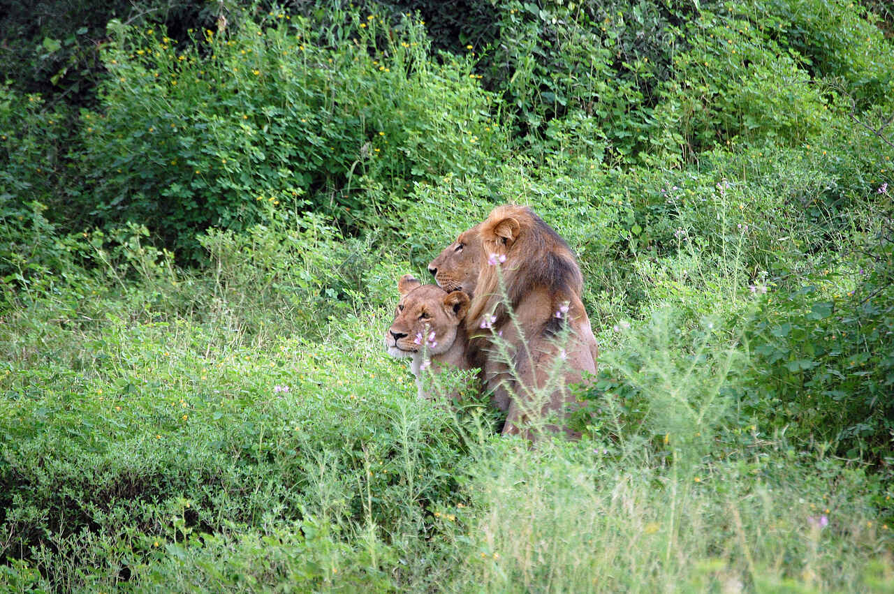 Elefanten, Büffel, Löwen, Hyänen, Afrikanische Wildhunde, Leoparden, Säbelantilopen, Zebras, Gnus, Nilpferde, Giraffen, Impalas, Ginsterkatzen, Stachelschweine, Krokodil, Nilwaran, Chamäleon und einige hundert Vogelarten, wie Löffler, Reiher, Fischadler, Eulen, Enten, Gänse, u. v. m.